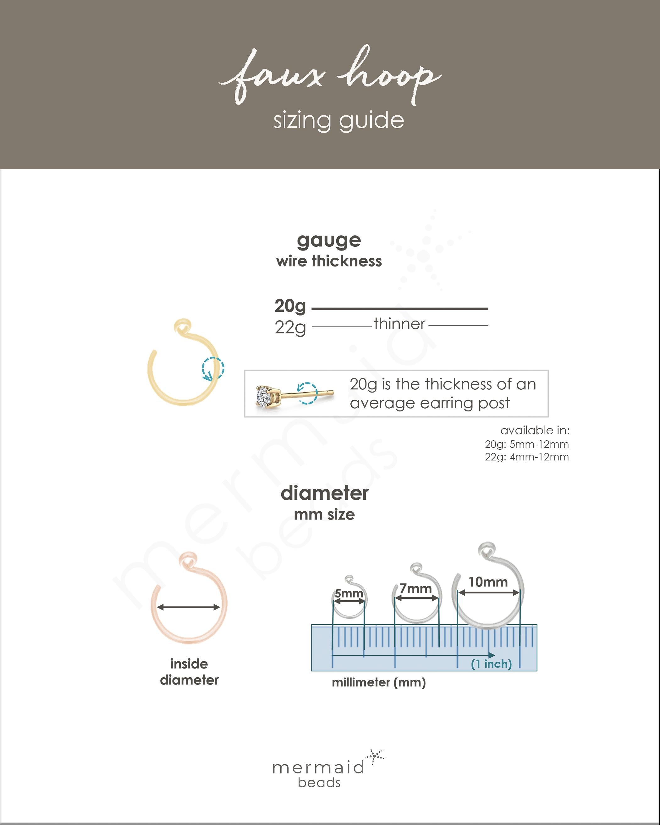 Our faux hoops are handmade just for you. You select the perfect size! To ensure the perfect fit, scroll through the images to view our Faux Hoop Size Guide.