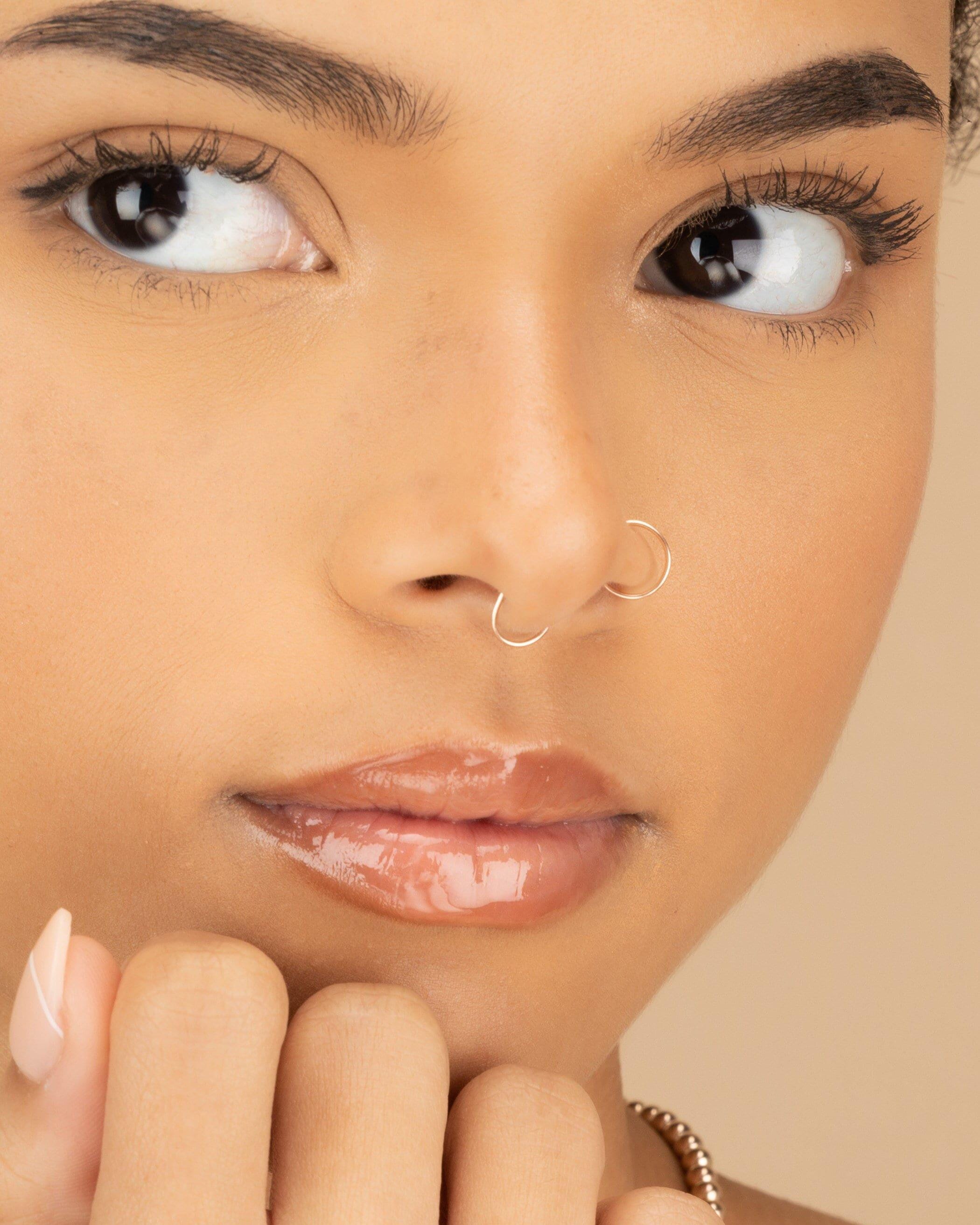 Check out the gorgeous Instagram Beauty Influencers modeling our faux nose rings in the images above! We are so grateful for their beautiful images and support of this jewelry. Also scroll through the images to view our Faux Hoop Sizing Guide and Faux Hoop Buying Guide. Check our FAQs (frequently asked questions) section below for more information.