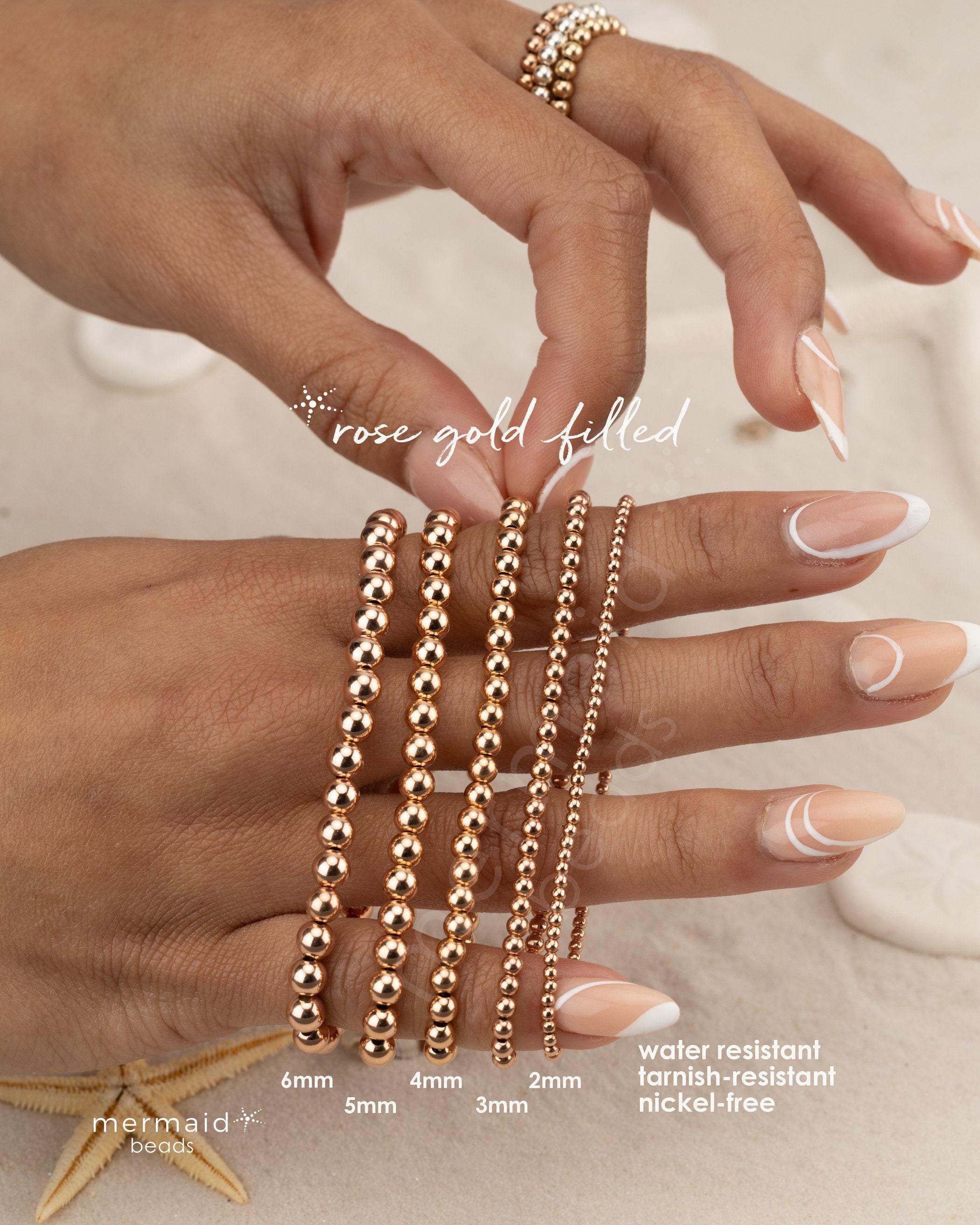 Our precious metal beaded bracelets and anklets are hand-strung on high-quality stretch cord. Mix and match bead sizes & colors for your own unique bracelet or anklet stack, or select our 'SHOP THE STACK'.