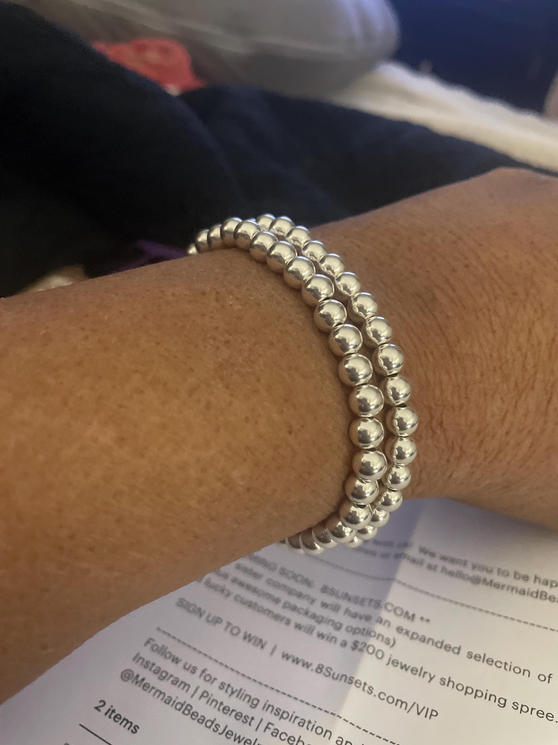 Our precious metal beaded bracelets and anklets are hand-strung on high-quality stretch cord. Mix and match bead sizes & colors for your own unique bracelet or anklet stack, or select our 'SHOP THE STACK'.