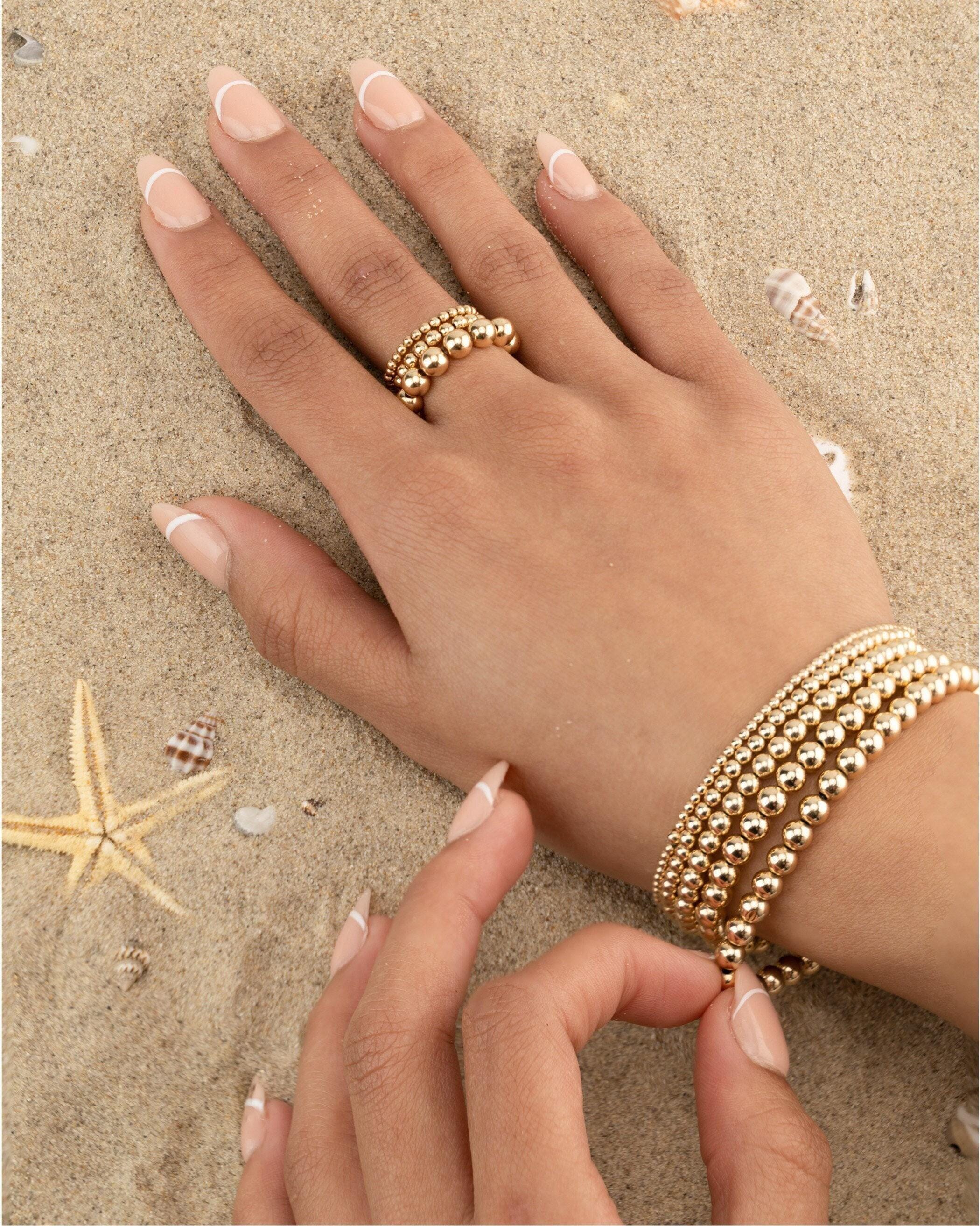 Our precious metal beaded bracelets and anklets are hand-strung on high-quality stretch cord. Mix and match bead sizes & colors for your own unique bracelet or anklet stack, or select our 'SHOP THE STACK'.