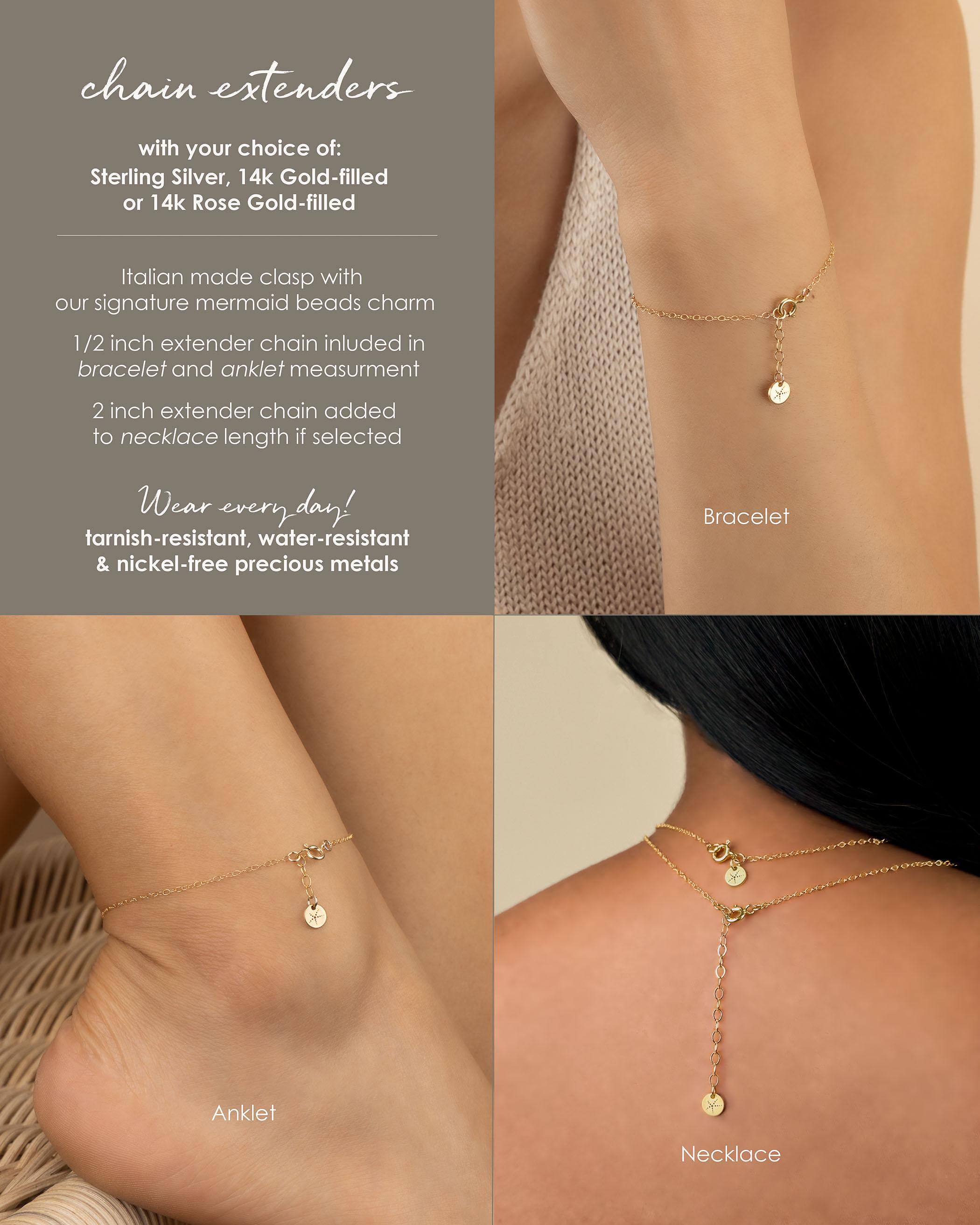 • Our premium chains are sterling silver, 14k gold-filled and 14k rose gold-filled for durability