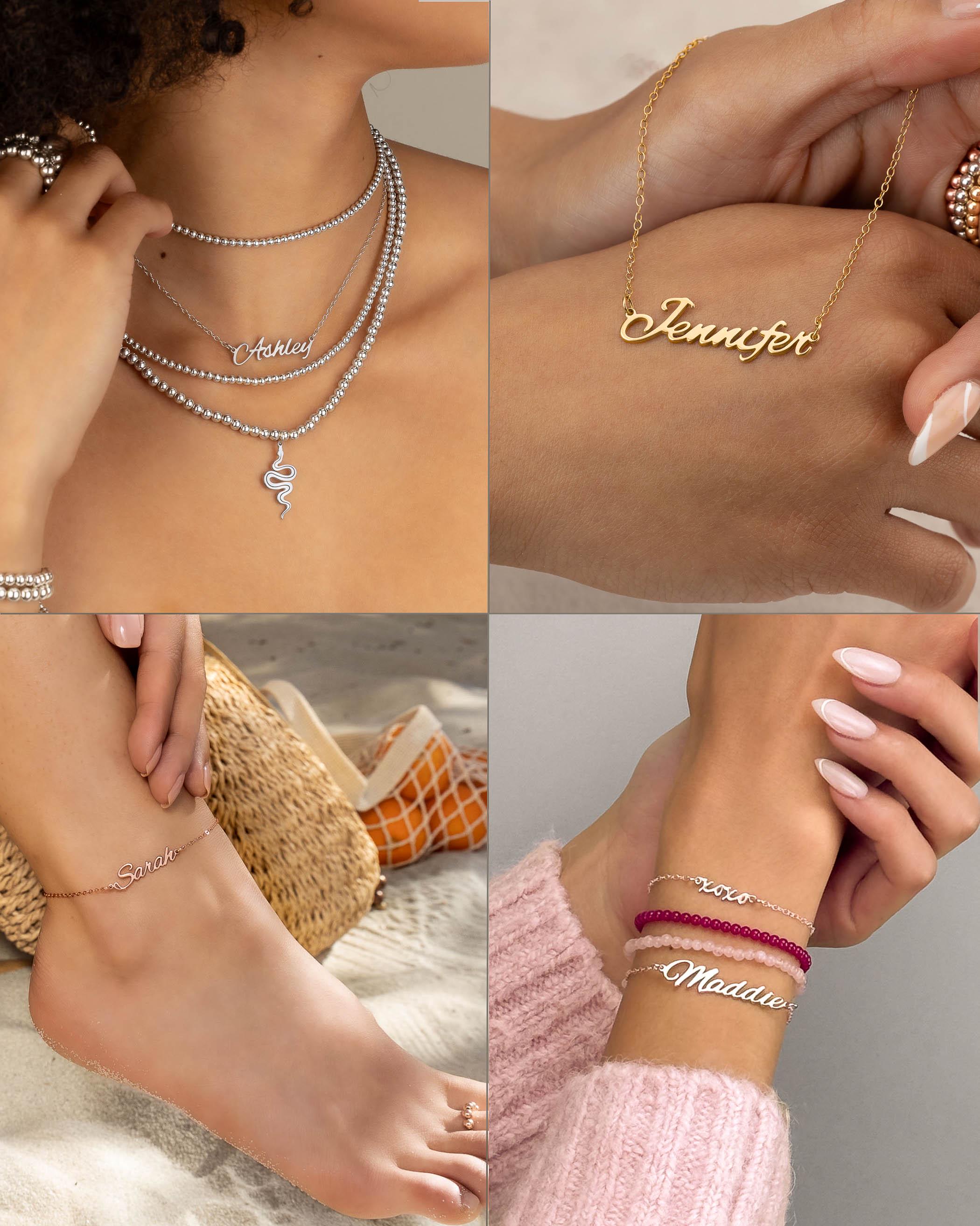 Scroll through the images to view our Named Bracelets and Anklets Size Chart and Named Necklaces Size Chart . Check our FAQs (frequently asked questions) section below for more information.