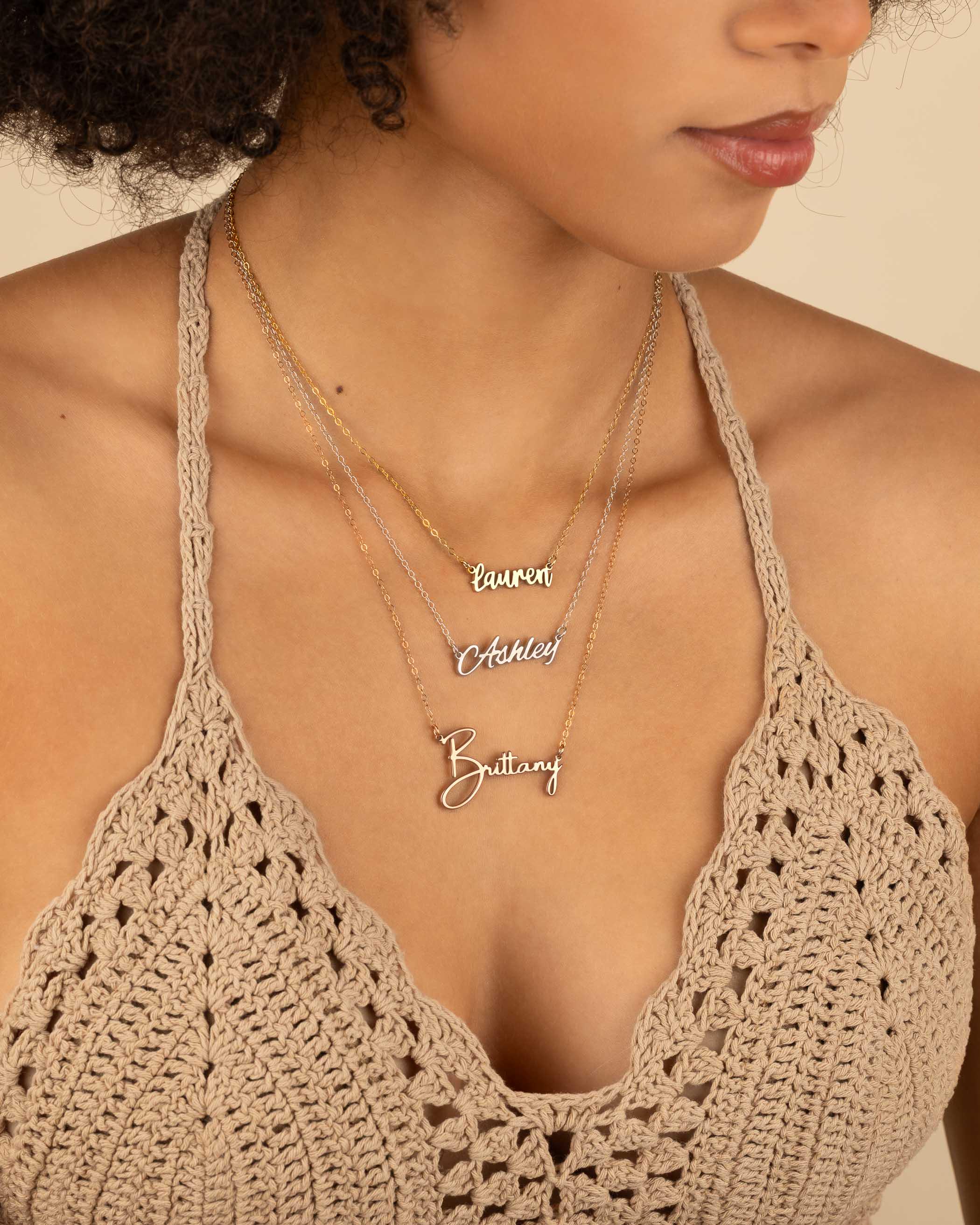 Personalize your own name, word or nickname with our beautiful font. Wear solo for a delicate statement or layer it with other jewelry for a trendy and personalized look that showcases your unique style.