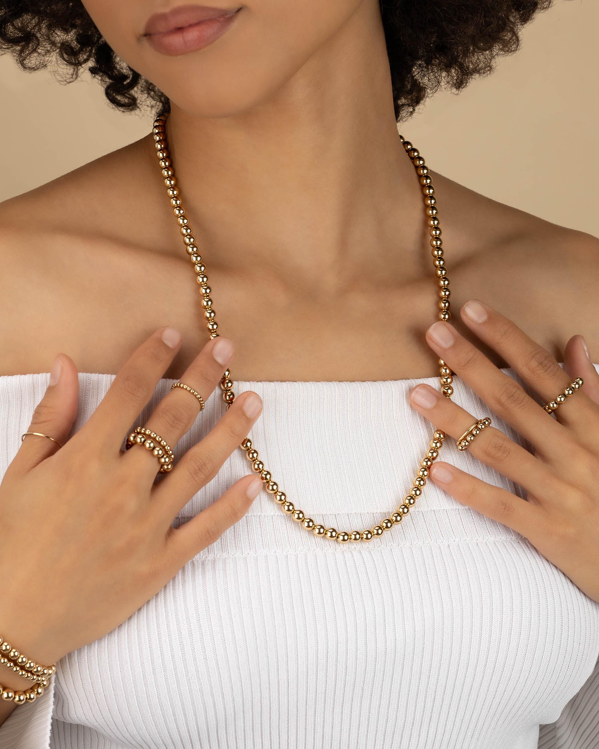 Our precious metal beaded rings are hand-strung on high-quality stretch cord. Mix and match bead sizes & colors for your own unique ring stack, or select our 'SHOP THE STACK'. A timeless mix of metals that will compliment all of your jewelry!