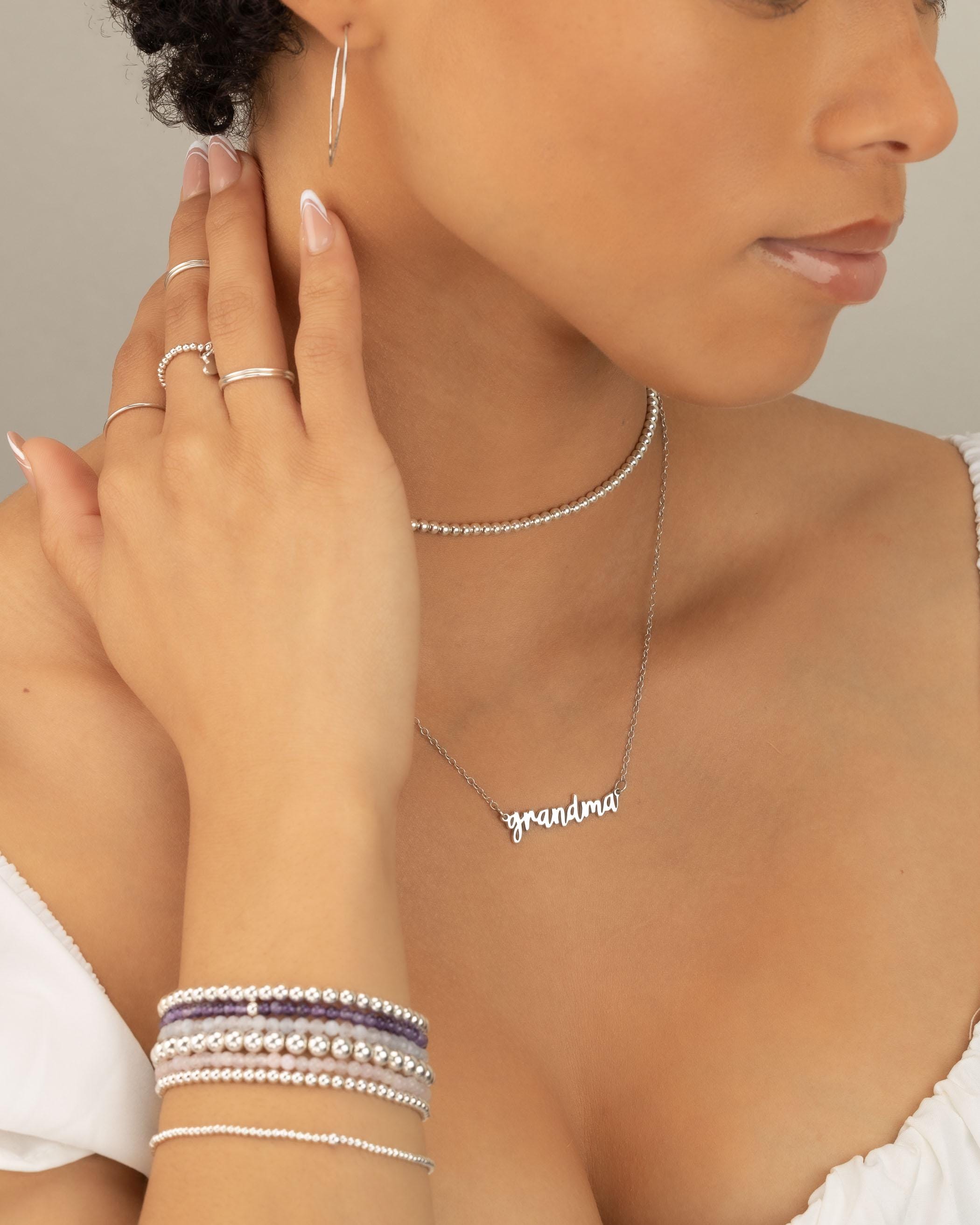 We use high-purity Argentium 940 Sterling Silver for personalized name pieces as it looks like platinum or white gold, is nickel-free, hypoallergenic, and is highly tarnish resistant. It is much easier to keep Argentium silver jewelry looking reflective and shiny. This makes our Argentium jewelry a thoughtful for anyone.