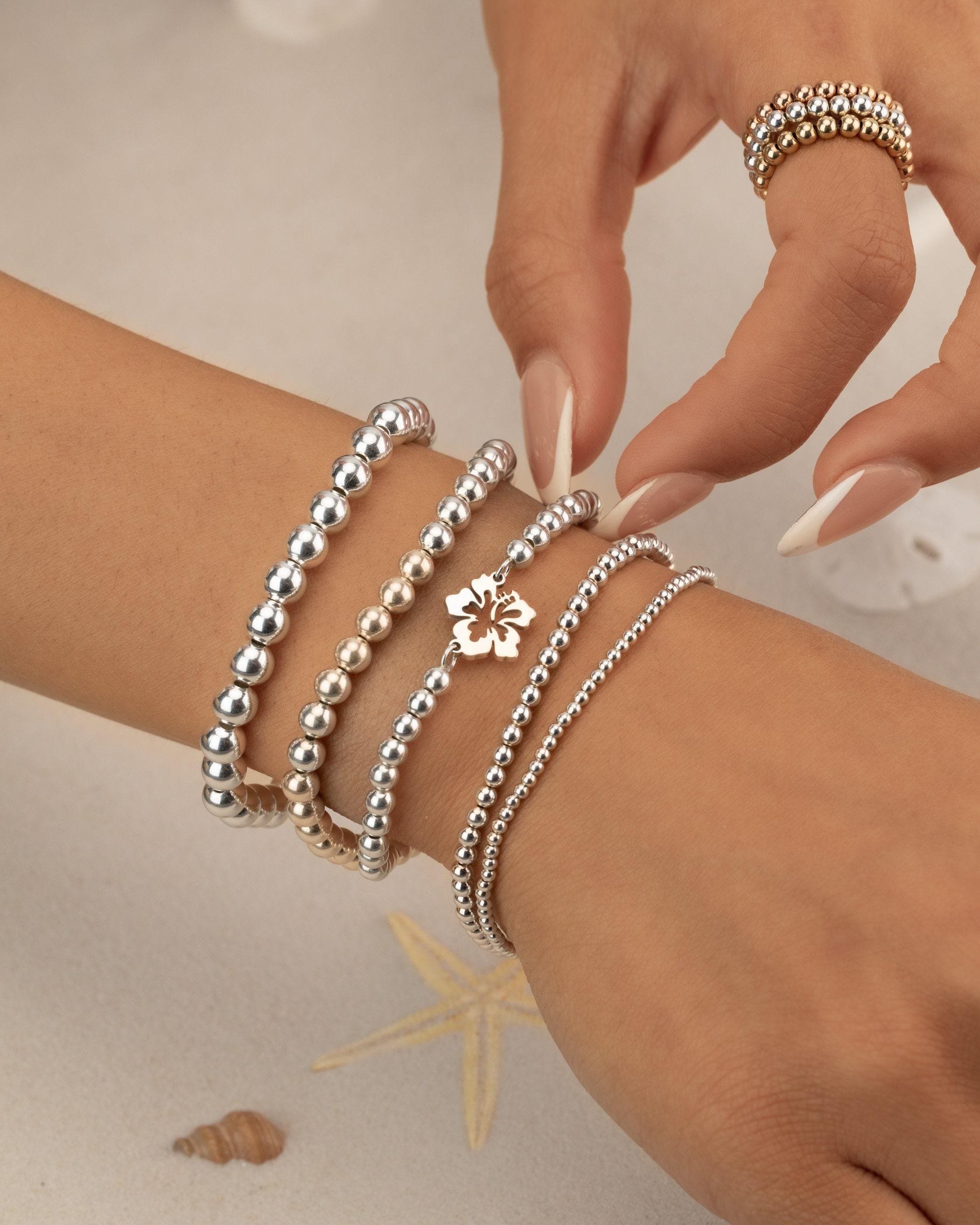 Beautiful charm bracelets and anklets with our custom made charms. Our precious metal beaded bracelets and anklets are hand-strung on high-quality stretch cord. Mix and match bead sizes & colors for your own unique bracelet or anklet stack.