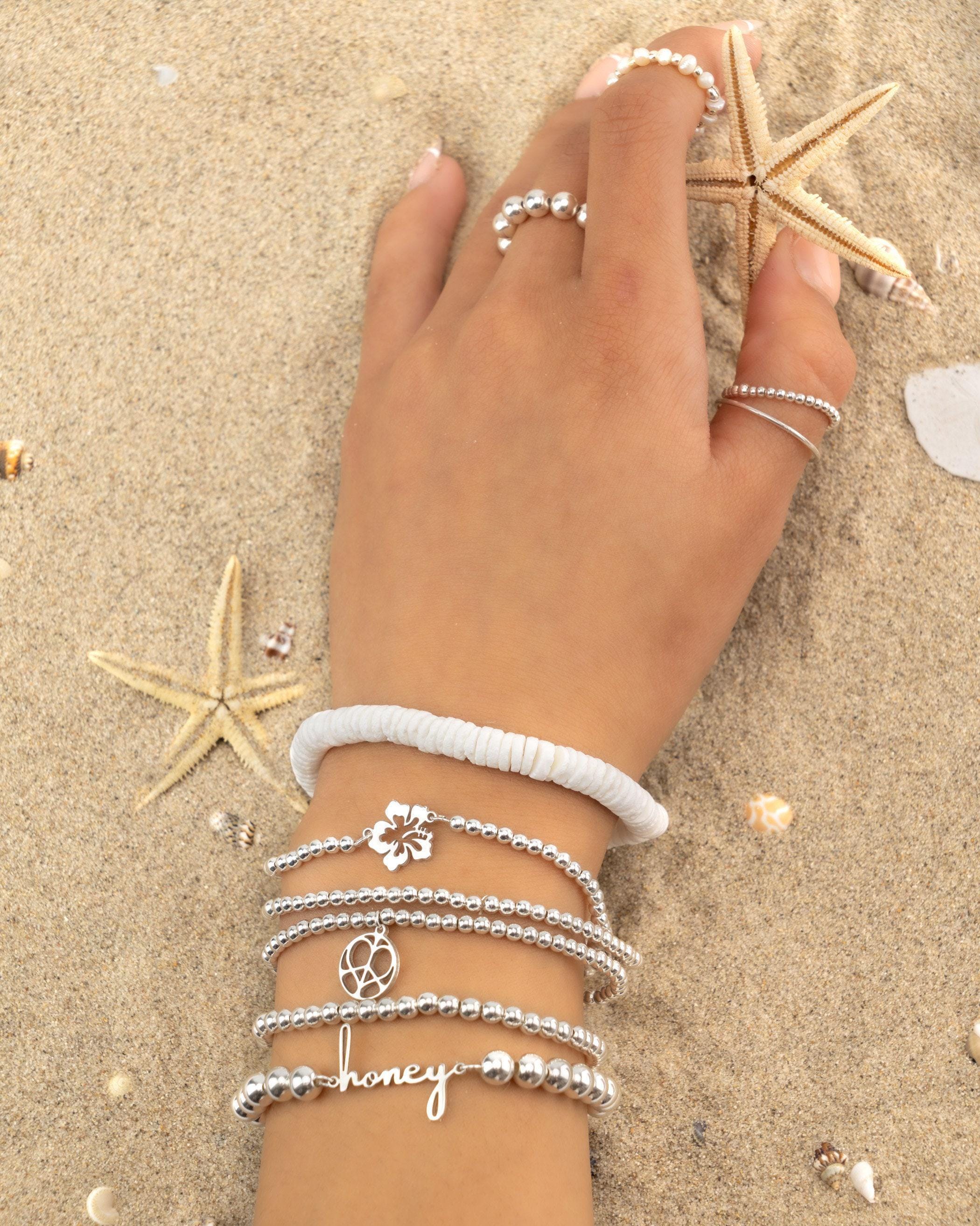 Beautiful charm anklets and bracelets with our custom made charms. Our precious metal beaded bracelets and anklets are hand-strung on high-quality stretch cord. Mix and match bead sizes & colors for your own unique bracelet or anklet stack.