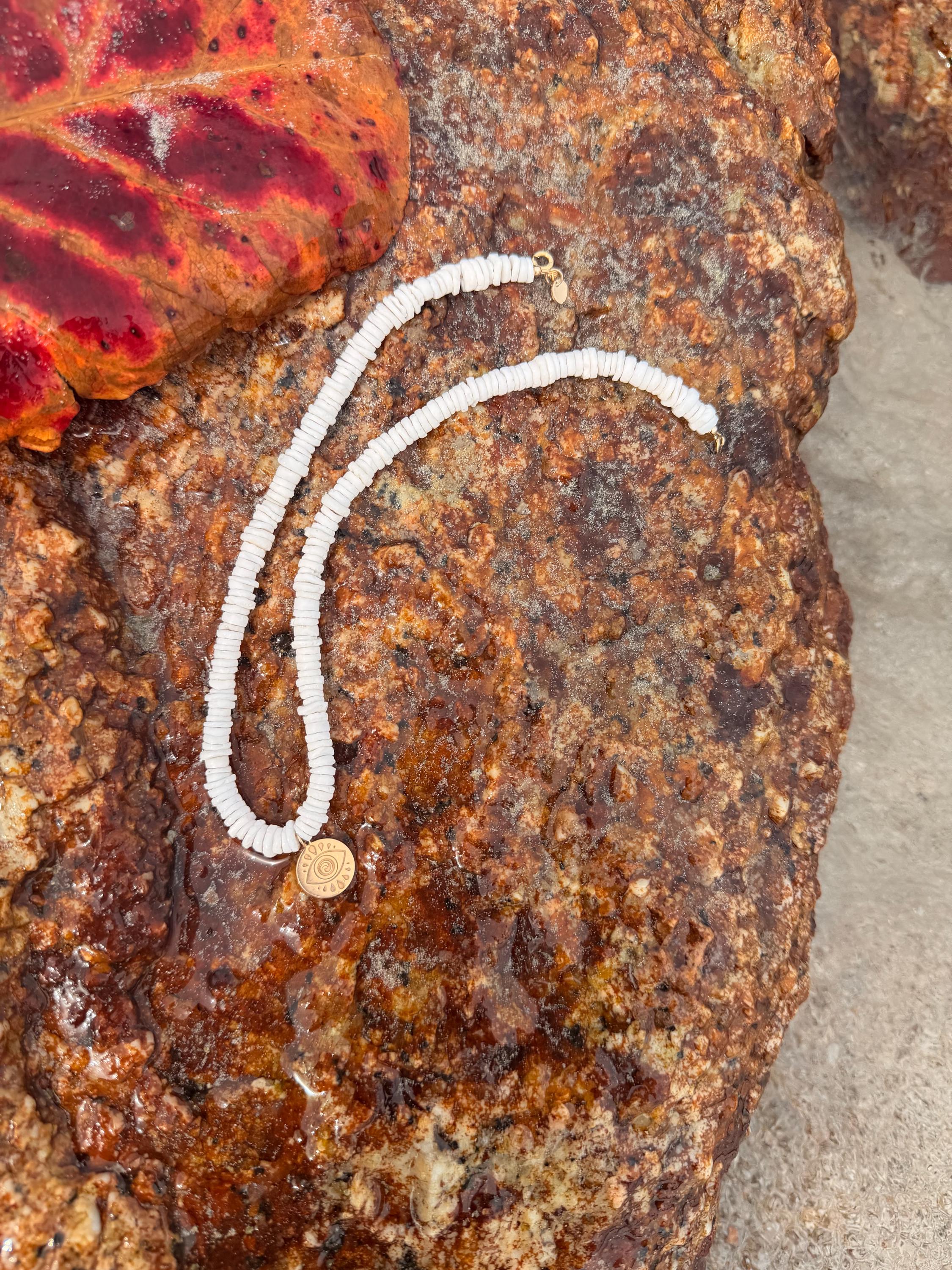 Genuine white shell heishi beaded necklace featuring your choice of our beautiful charm pendants.