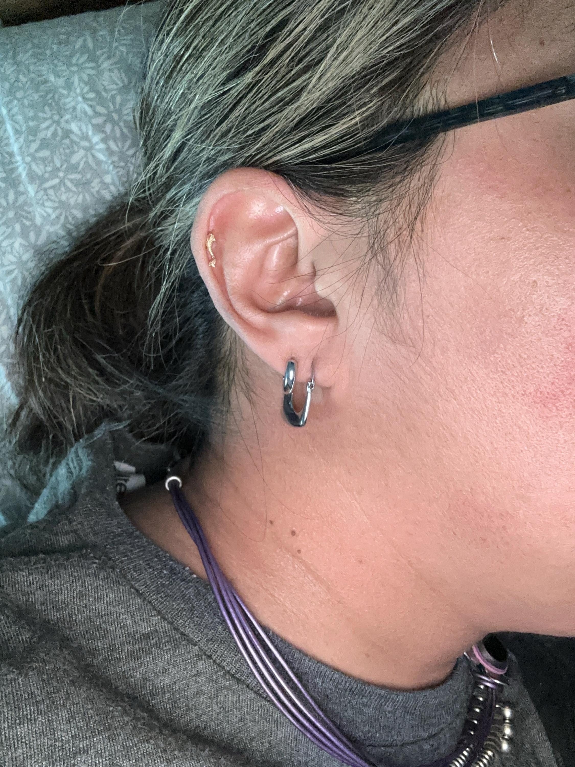 4. Once inserted in your piercing, gently twist the hoop so the ends meet and line up perfectly for a comfortable fit