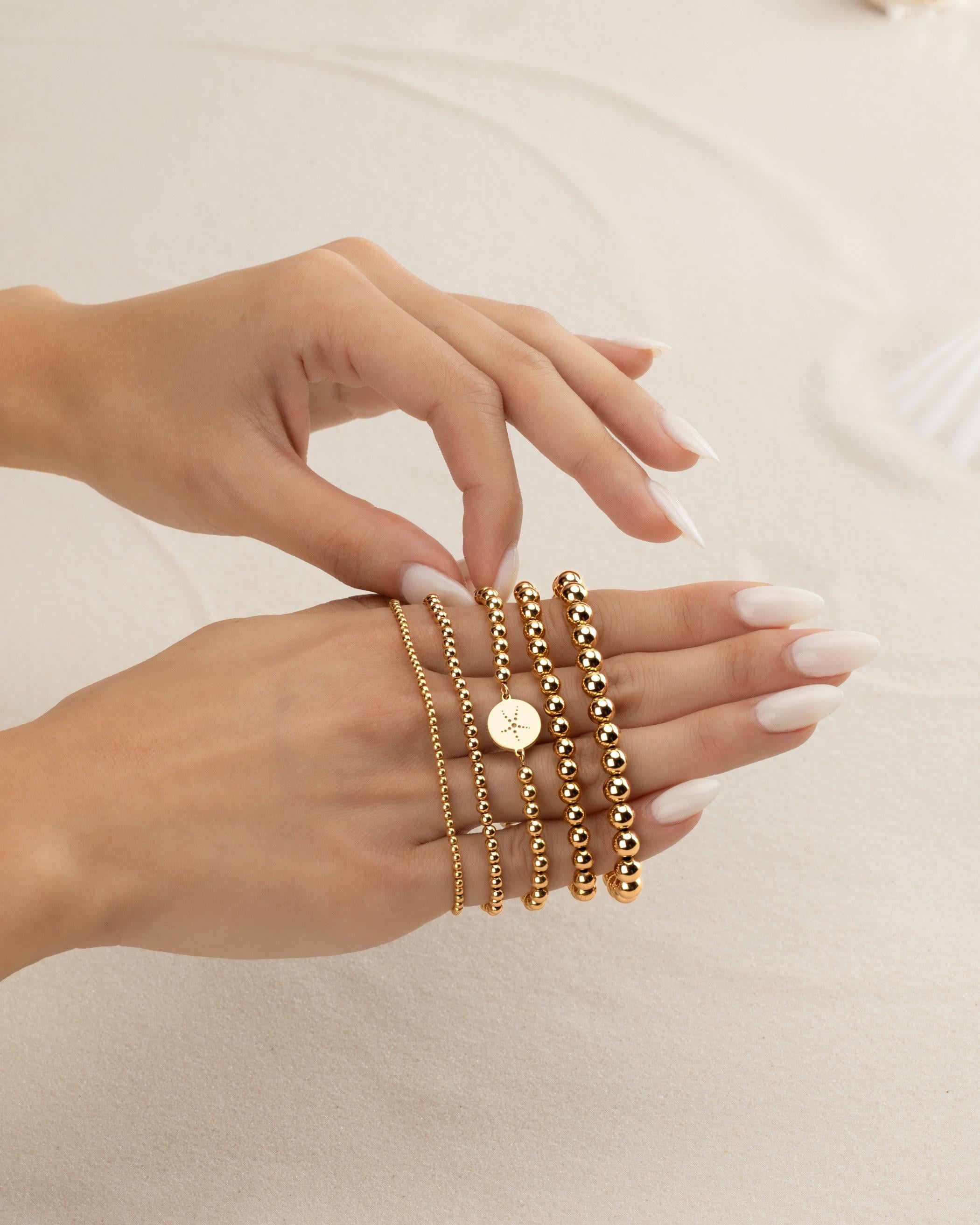 Beautiful charm bracelets and anklets with our custom made charms. Our precious metal beaded bracelets and anklets are hand-strung on high-quality stretch cord. Mix and match bead sizes & colors for your own unique bracelet or anklet stack.