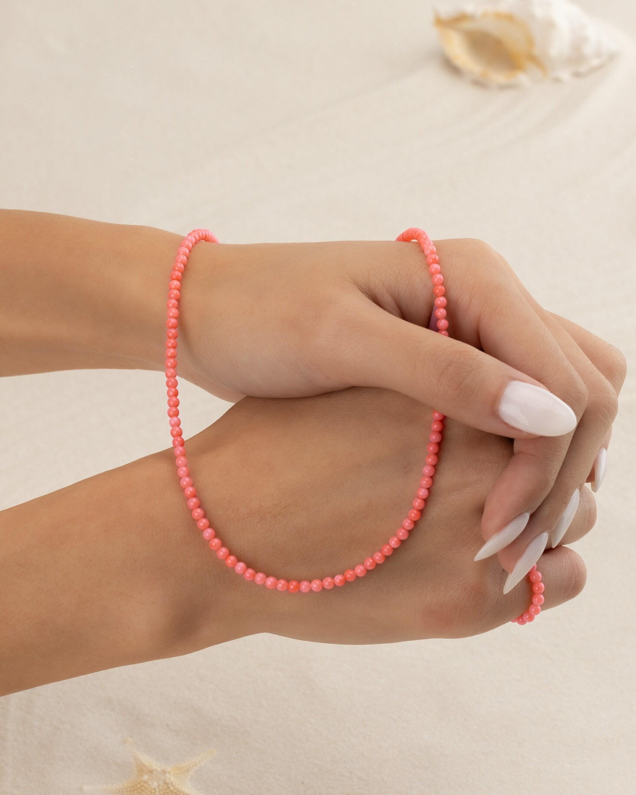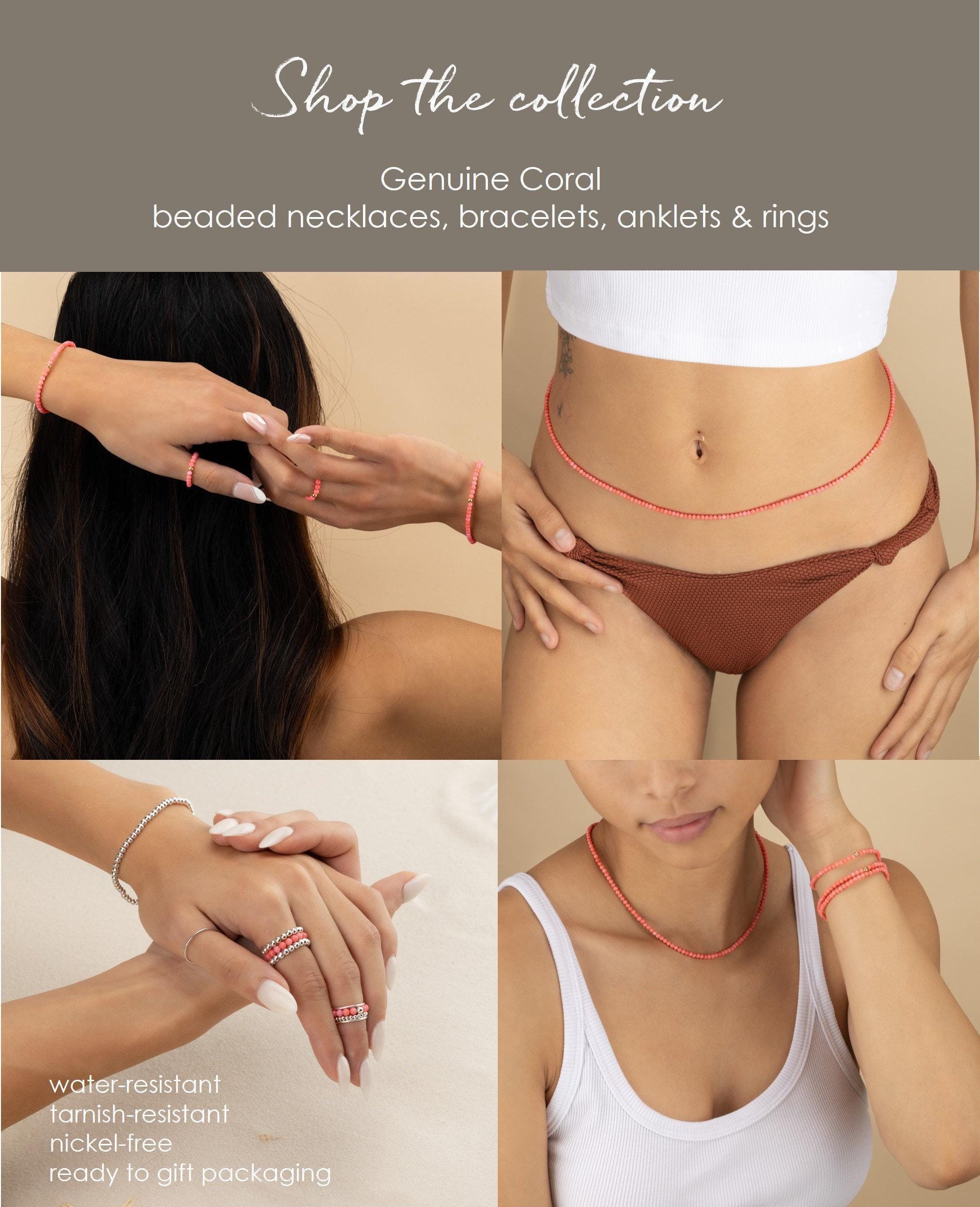 Genuine Coral beaded waist beads handmade in your choice of clasp color and length. These beautiful semi-precious gemstone beads are hand-strung on high-quality jeweler's wire and completed with an Italian made clasp and pretty extender chain with our Mermaid Beads starfish charm.