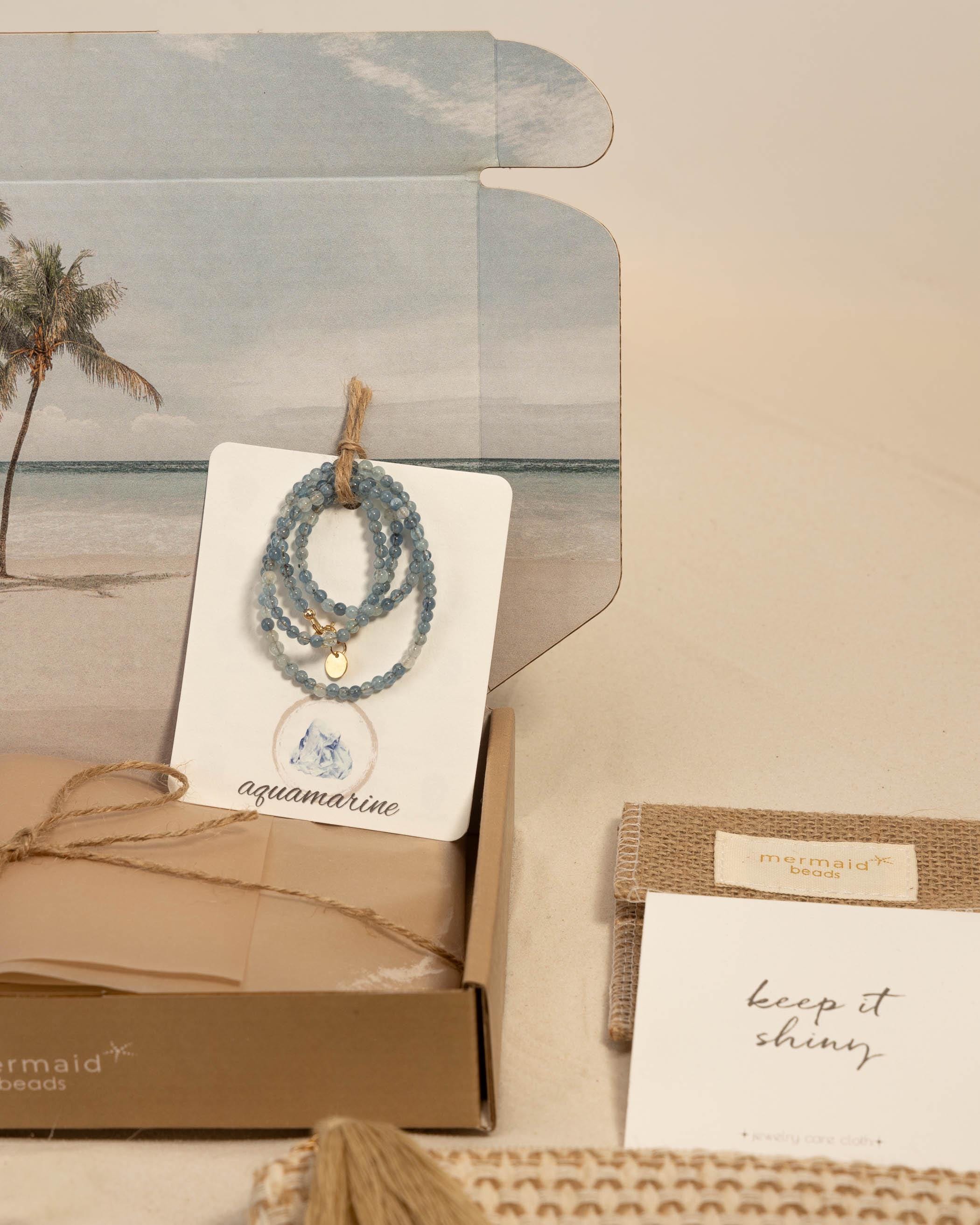 Your jewelry is packaged in ready-to-gift packaging in our recyclable Mermaid Beads Jewelry Box. In an effort to reduce waste, we consolidate multiple items in one box. If you need additional boxes for multiple items in your order, please leave us a note in the "note to seller!" box at checkout . We'll box it separately.