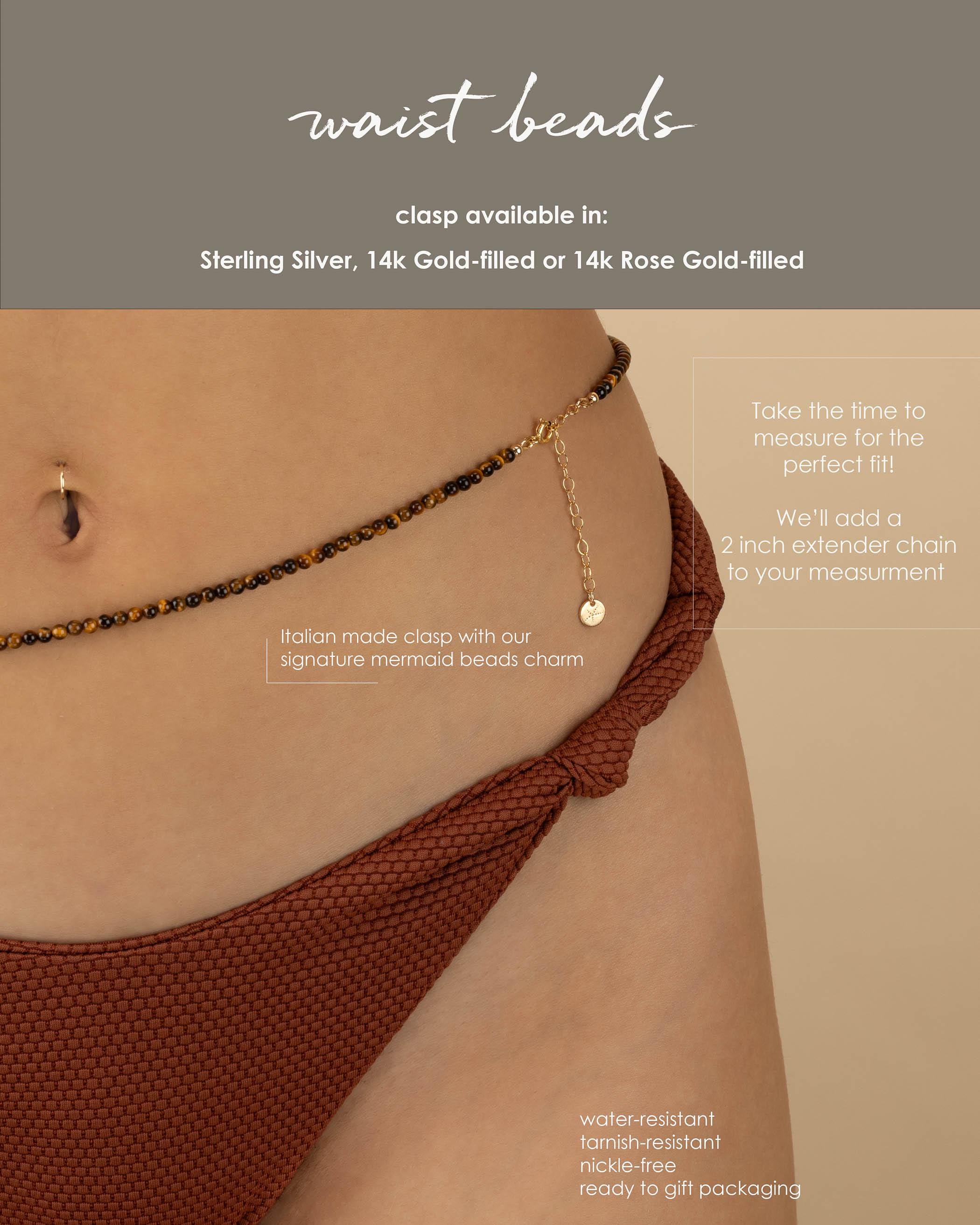 Did you know? Waist beads have been worn by generations in many cultures to celebrate a woman's feminine power and beauty. Some believe that wearing waist beads helps them stay thin by keeping them always aware of their abdominal muscles and correct posture. We just think they are beautiful!