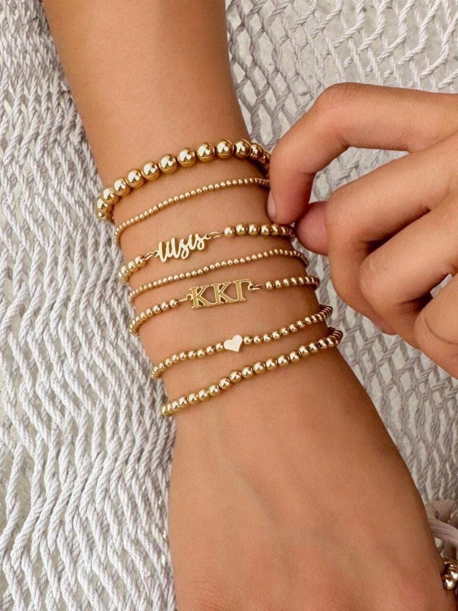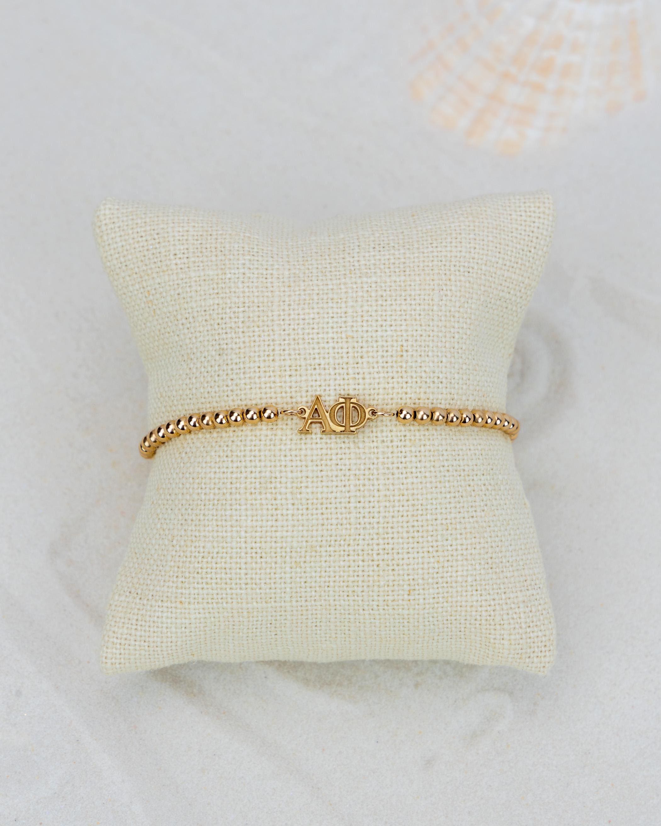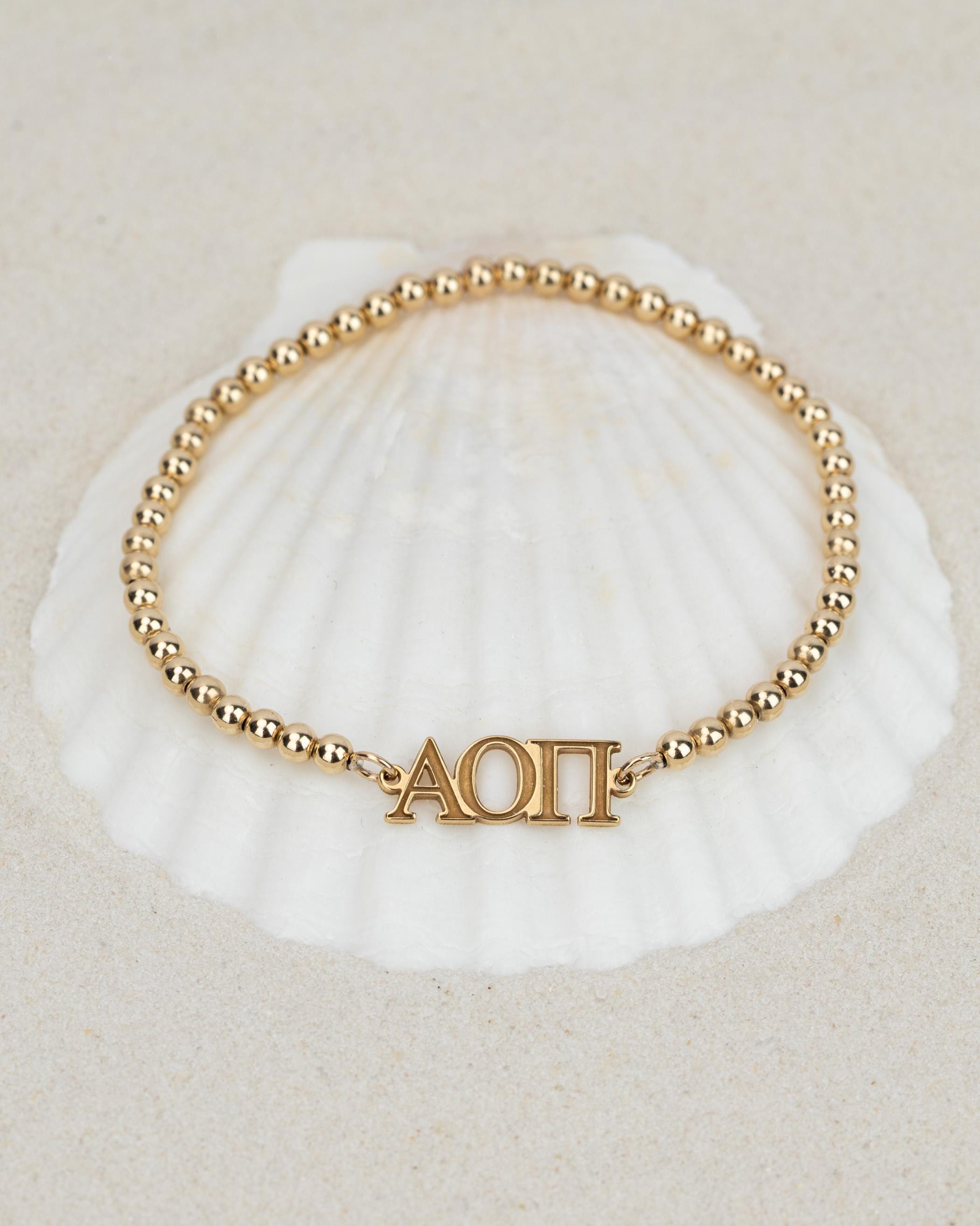 Our custom sorority logos on our bestselling beaded bracelet or anklet. Wear solo for a delicate statement or layer with other bracelets for a trendy and personalized look that showcases your unique style. All bracelets and anklets are hand-strung on a strong stretch cord - easy and comfy to wear.