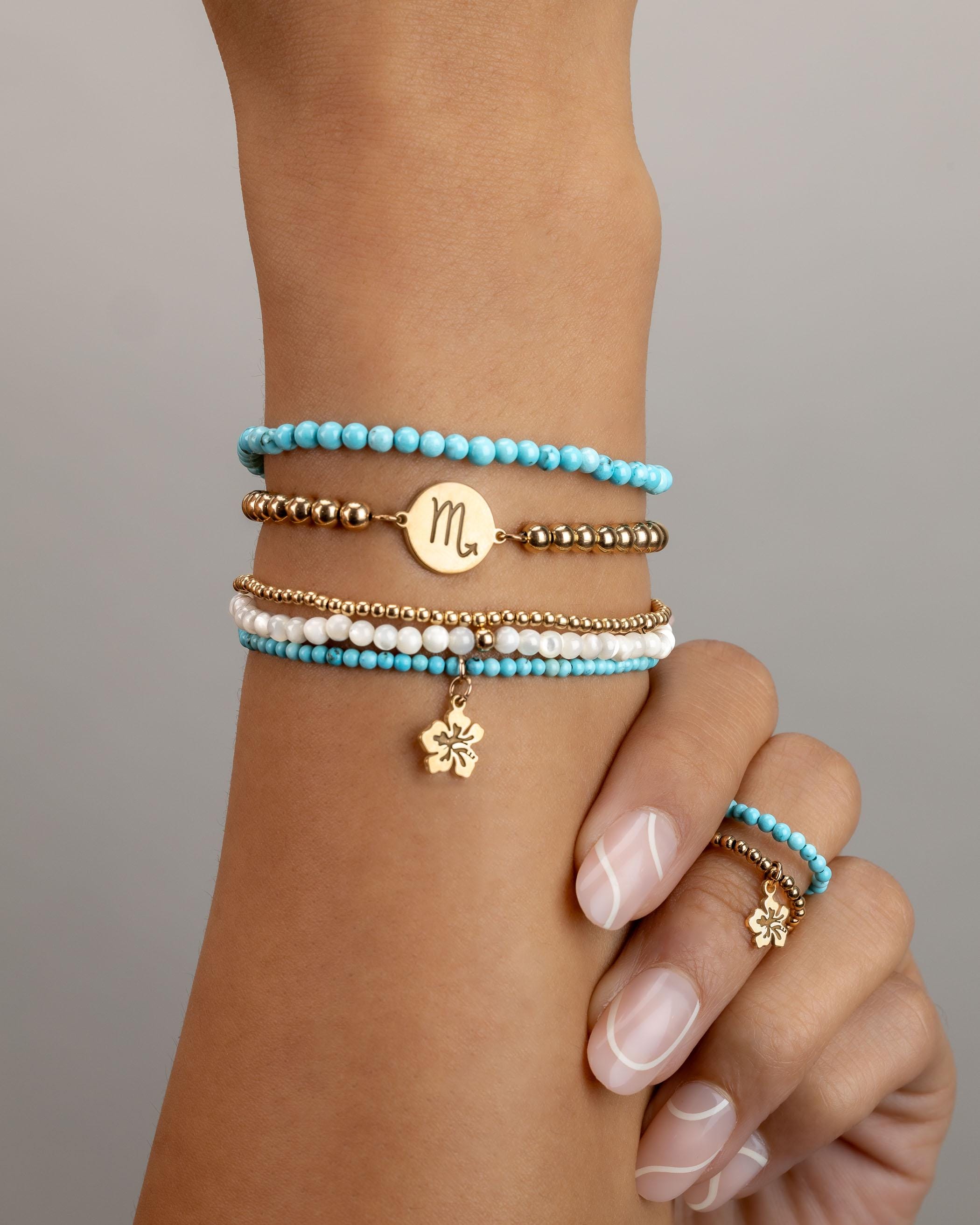 Beautiful charm bracelets and anklets with our custom made charms. Our precious metal beaded bracelets and anklets are hand-strung on high-quality stretch cord. Mix and match bead sizes & colors for your own unique bracelet or anklet stack.