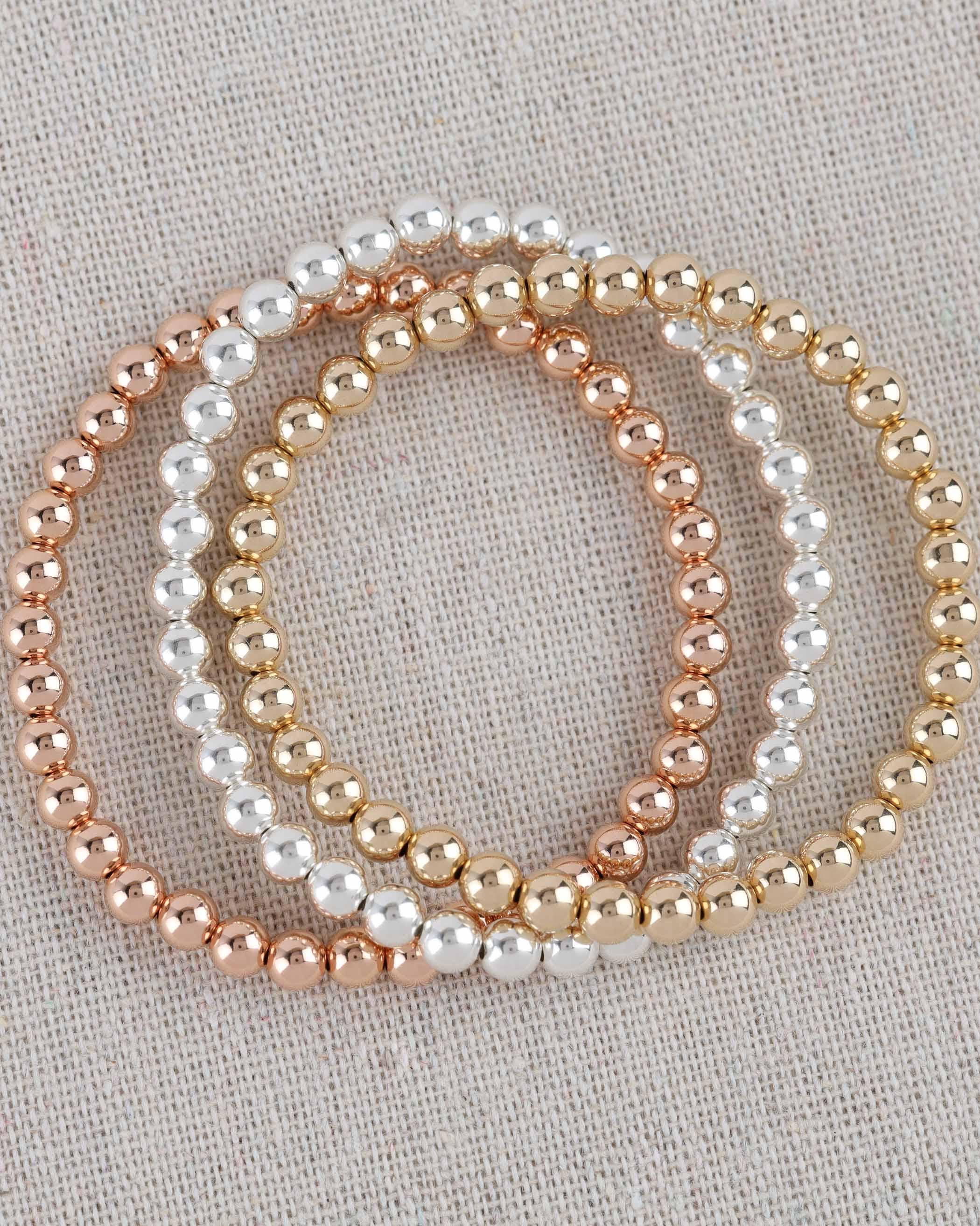 Our precious metal beaded bracelets and anklets are hand-strung on high-quality stretch cord. Mix and match bead sizes & colors for your own unique bracelet or anklet stack, or select our 'SHOP THE STACK'.
