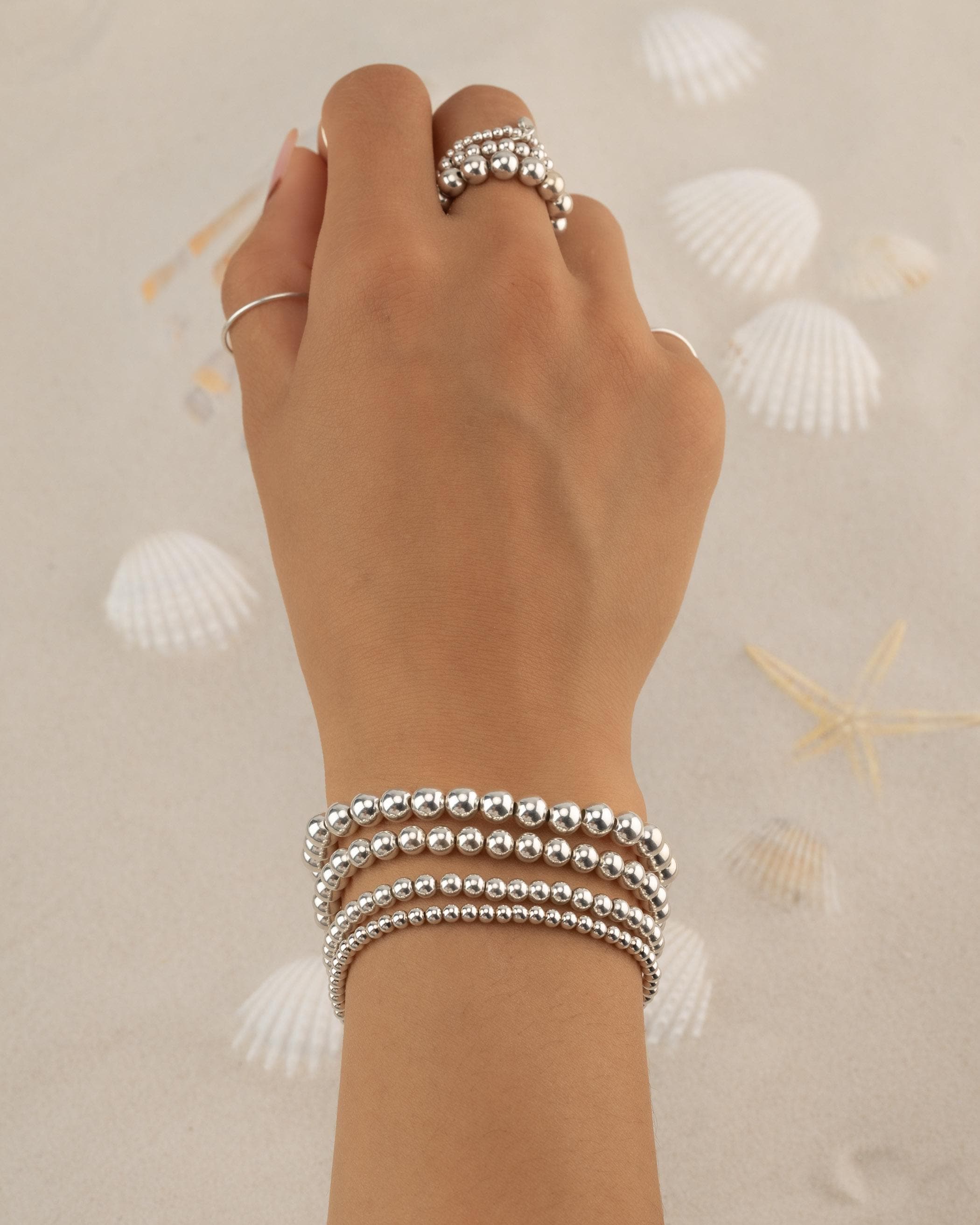 Our precious metal beaded bracelets and anklets are hand-strung on high-quality stretch cord. Mix and match bead sizes & colors for your own unique bracelet or anklet stack, or select our 'SHOP THE STACK'.