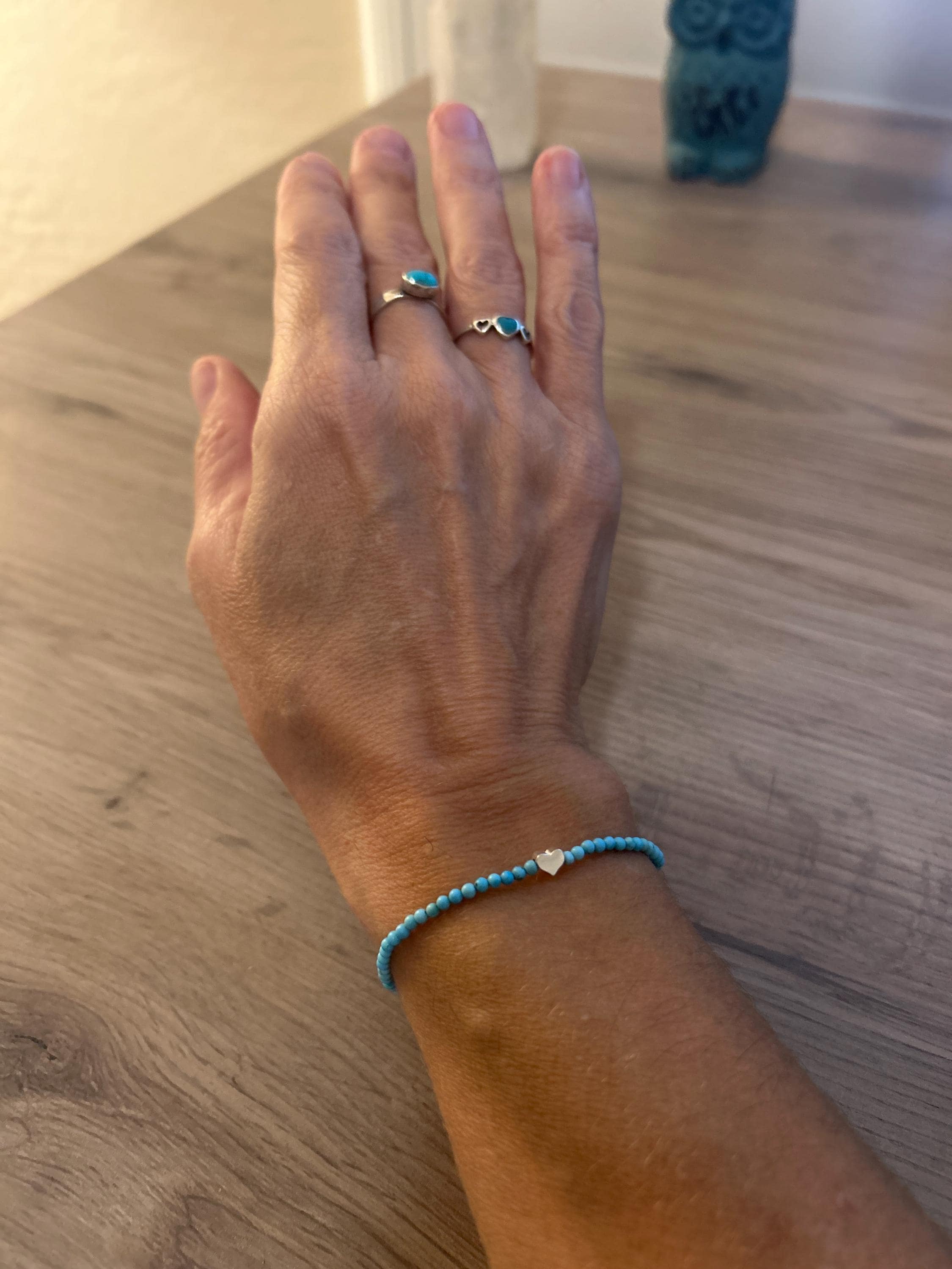 Minimalist genuine turquoise beaded bracelet or anklet handmade in your choice of length. These beautiful bracelets and anklets are hand-strung on high-quality stretch cord. A beautiful pop of color to wear on its own or layered with your favorite jewelry.