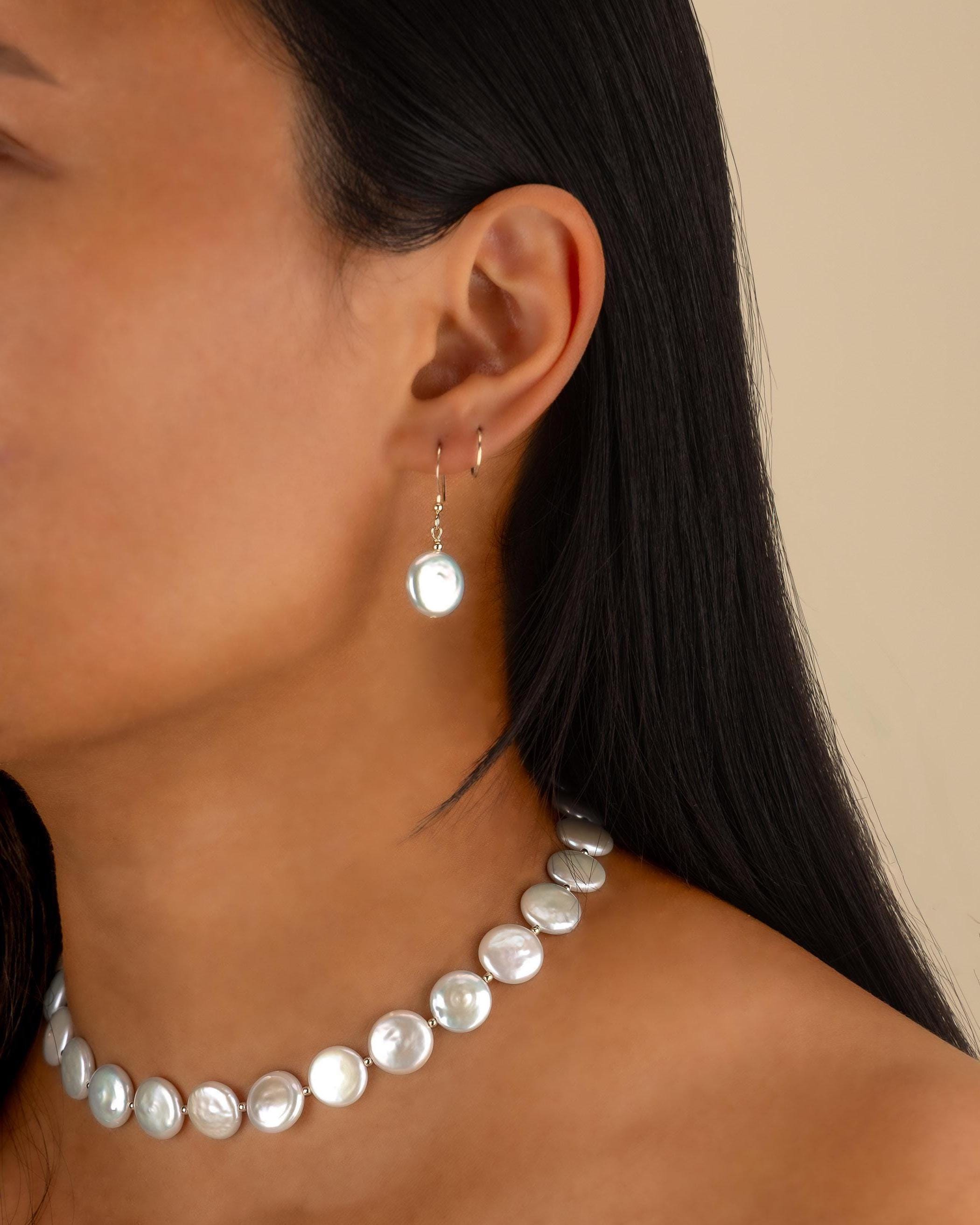 Coin pearls are unique cultured freshwater pearls that are round and flat in shape. They are known for their high luster and iridescent coloration featuring beautiful pink, white, cream and gold hues.