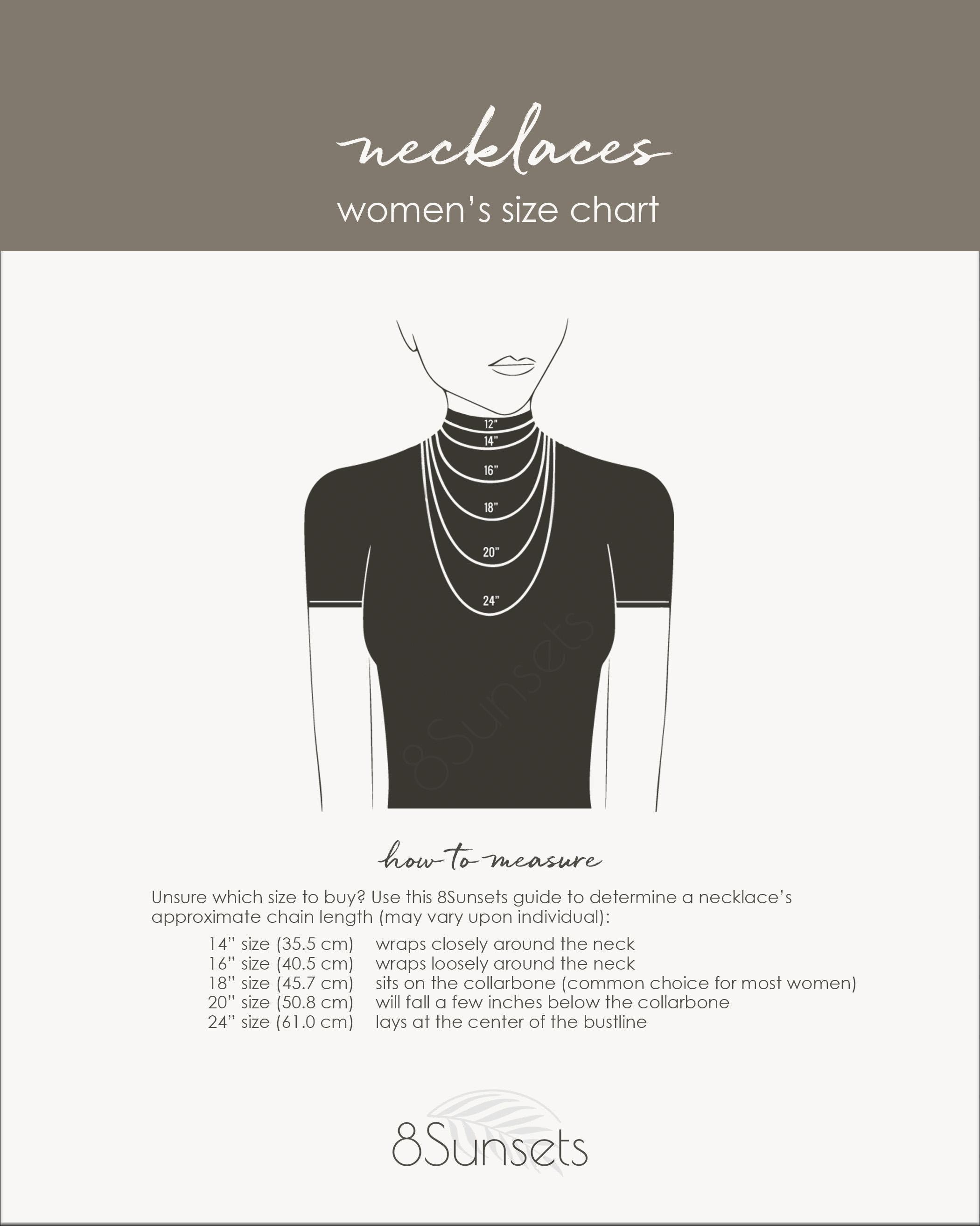 Our necklaces are handmade just for you. To select the perfect fit, scroll through the images to view our Necklaces Size Chart.