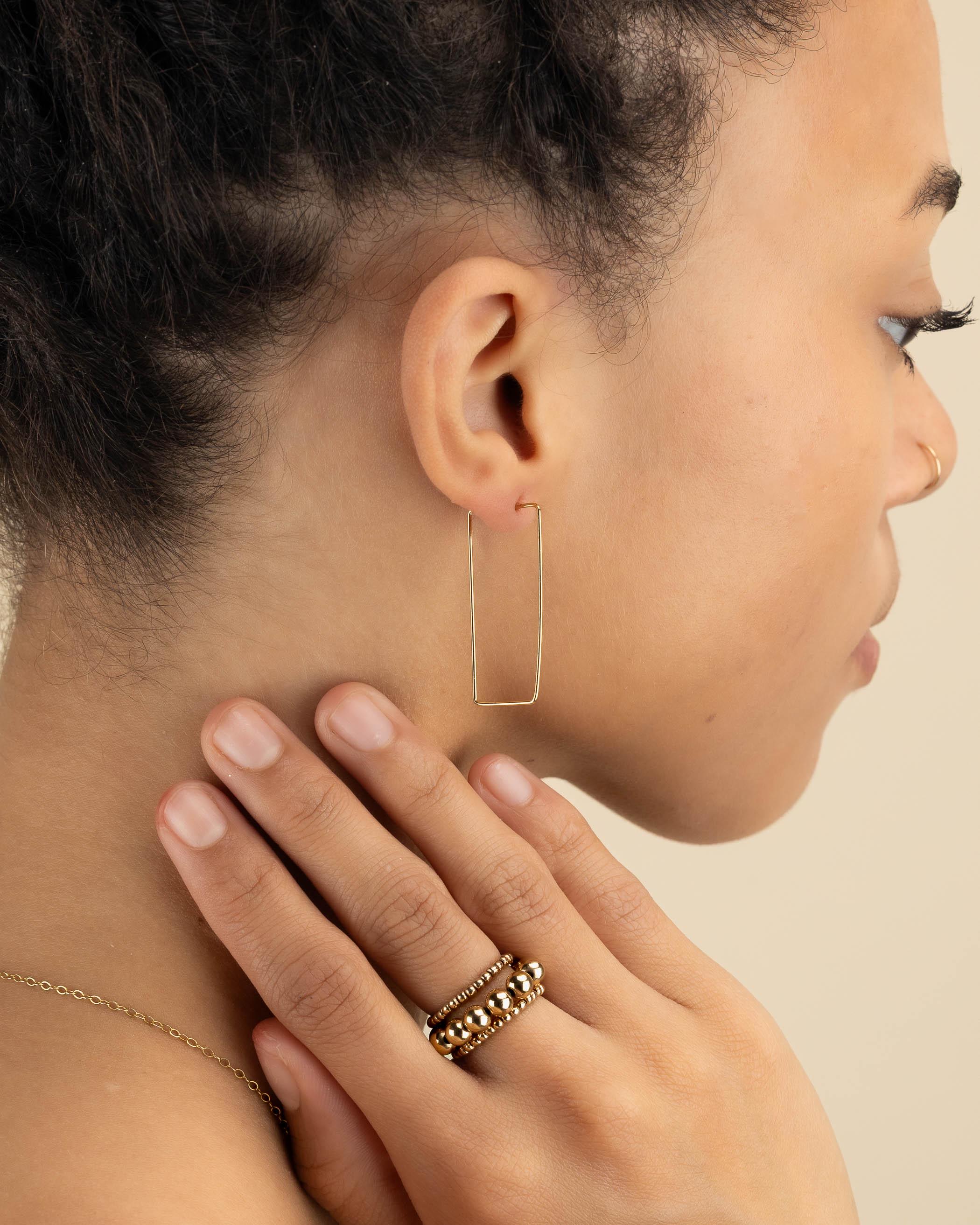 These cool hoops will be your favorite go-to hoops! The geometric angles provide a unique and interesting addition to any outfit. The perfect size to compliment any face shape.