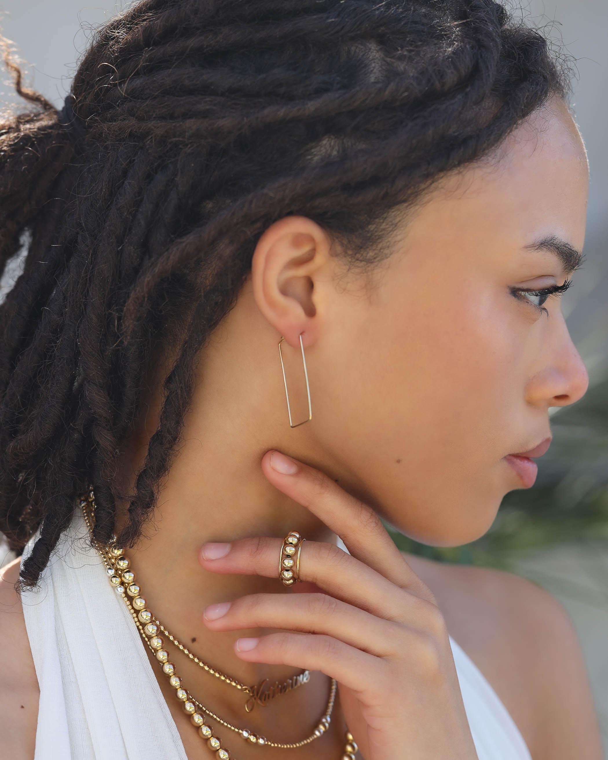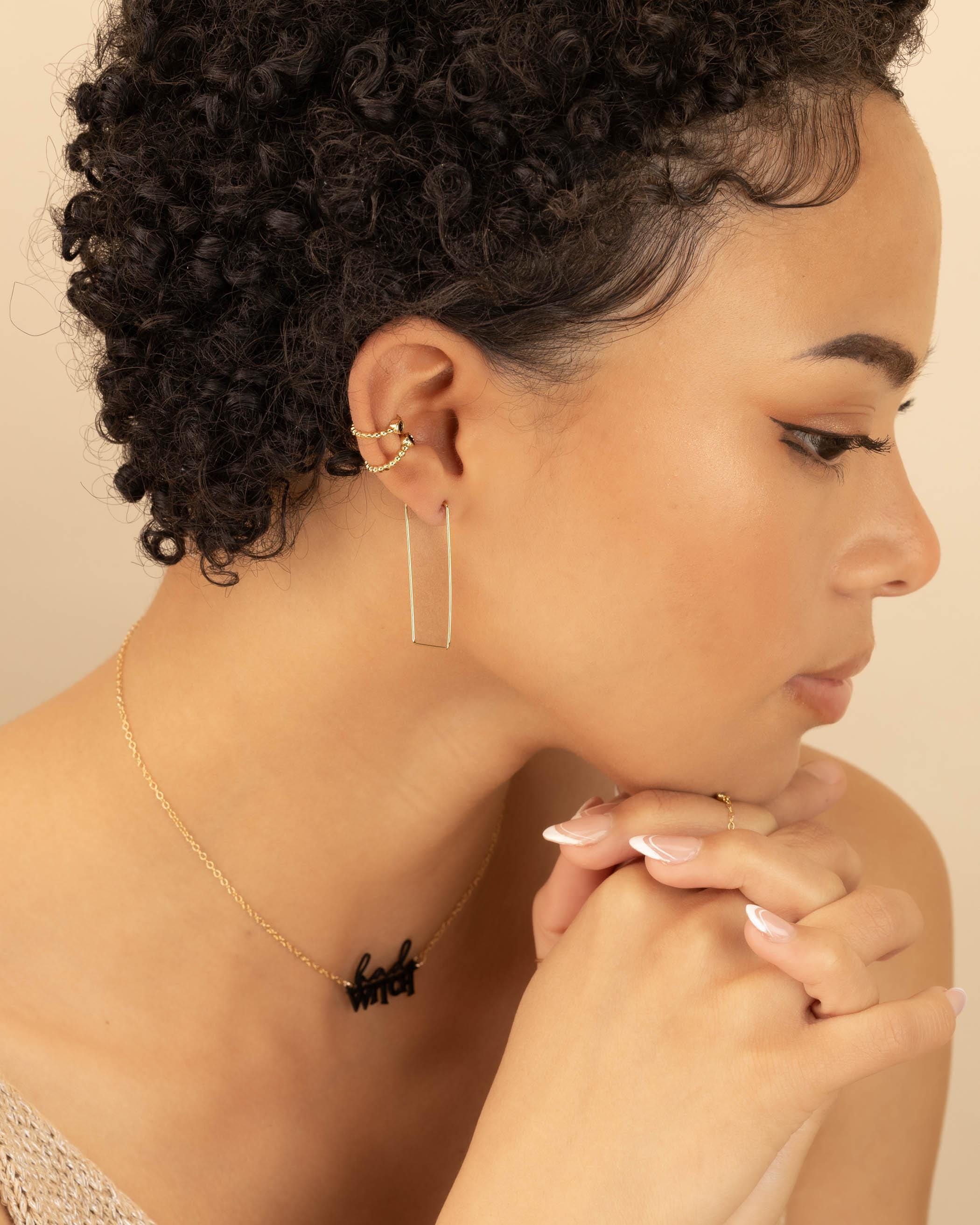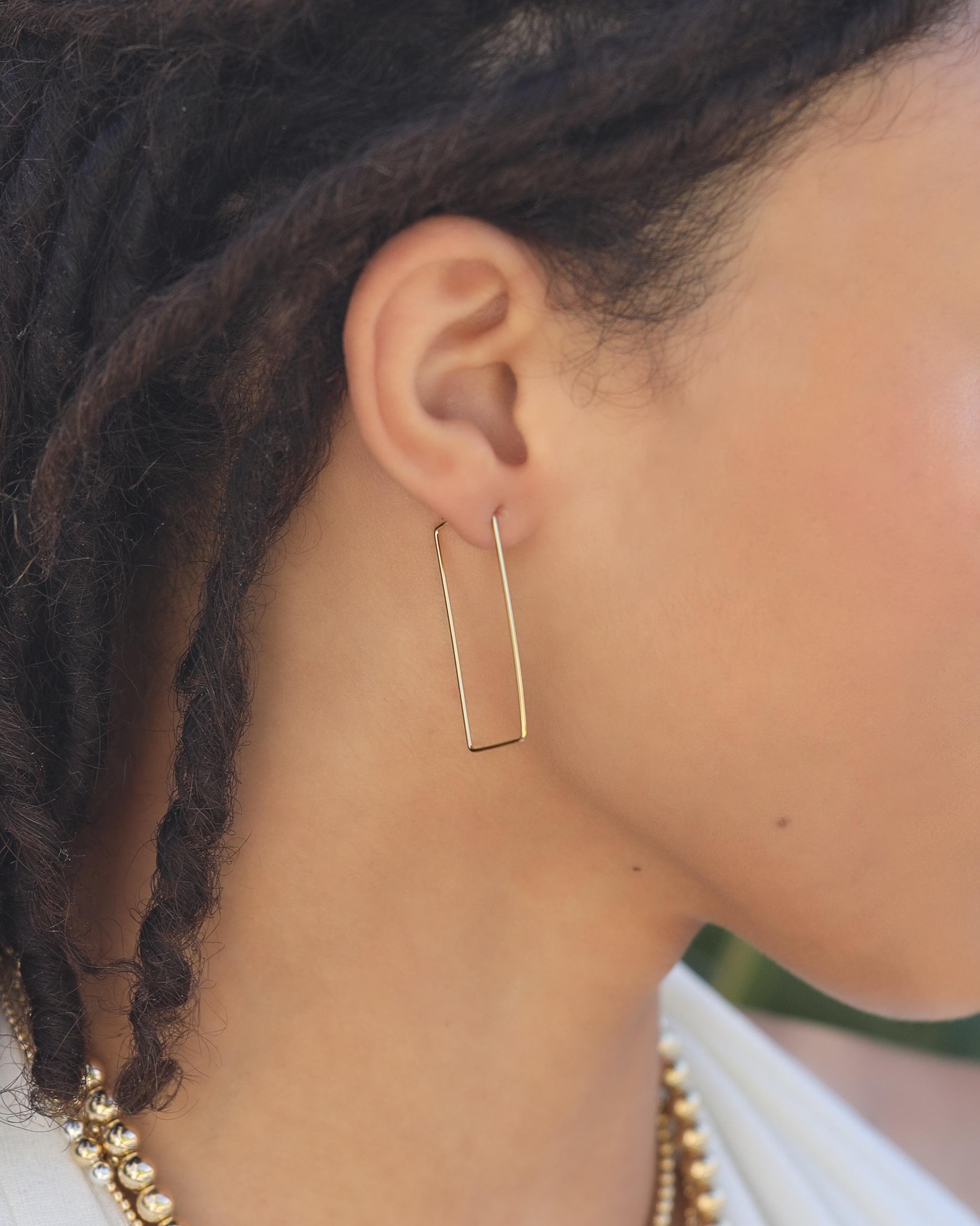 These cool hoops will be your favorite go-to hoops! The geometric angles provide a unique and interesting addition to any outfit. The perfect size to compliment any face shape.
