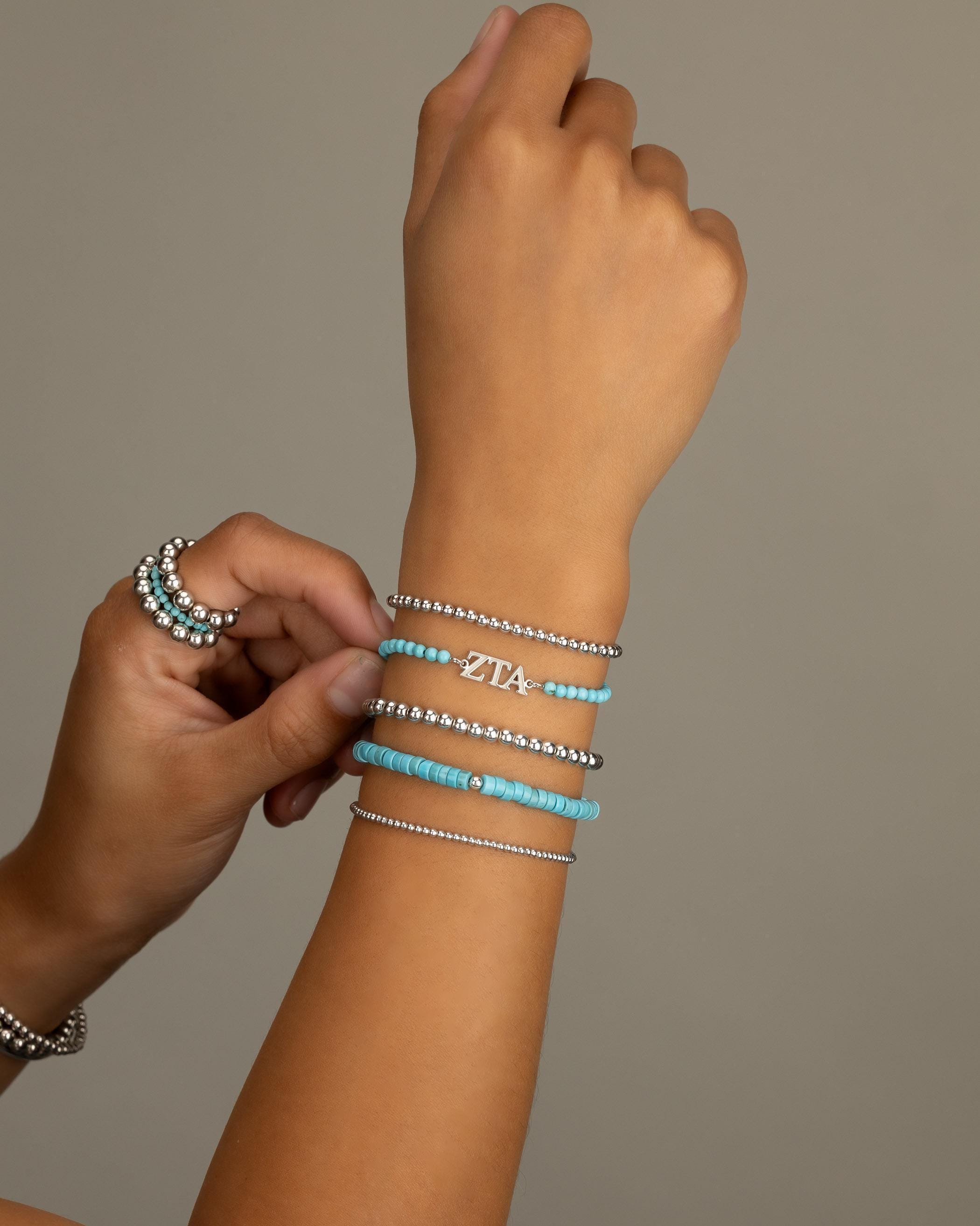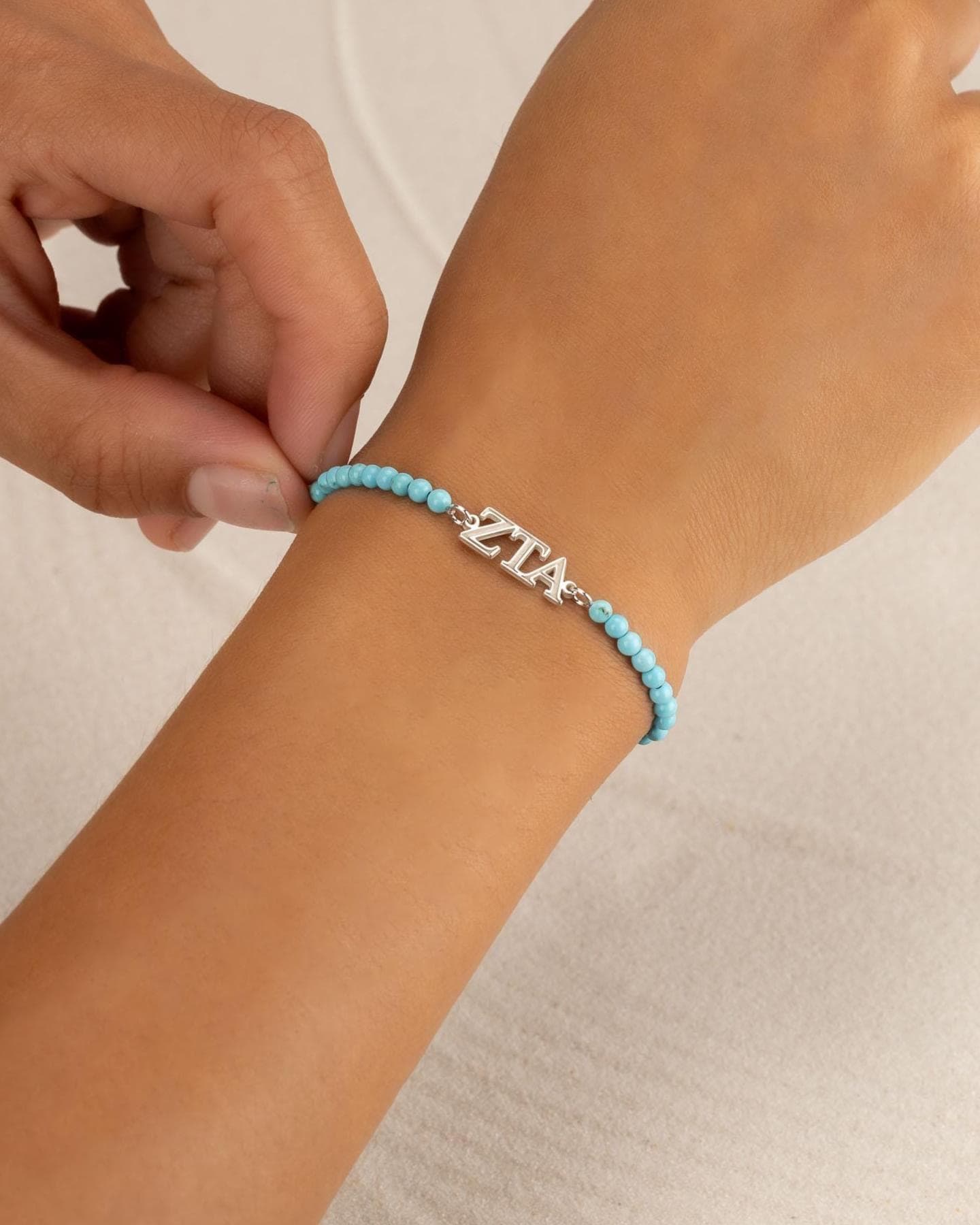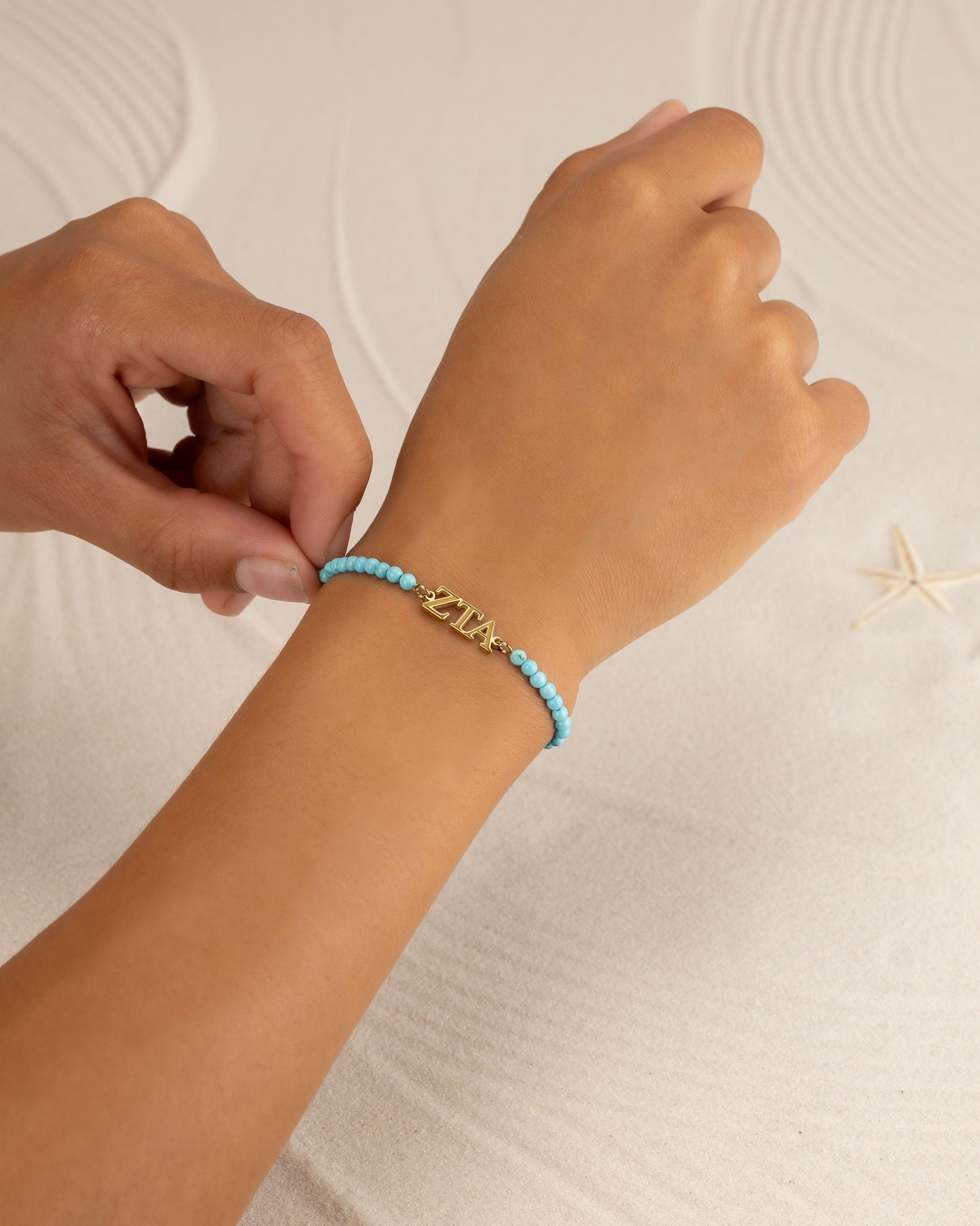 Your greek letters hand beaded using genuine Southwest Turquoise gemstone beads.