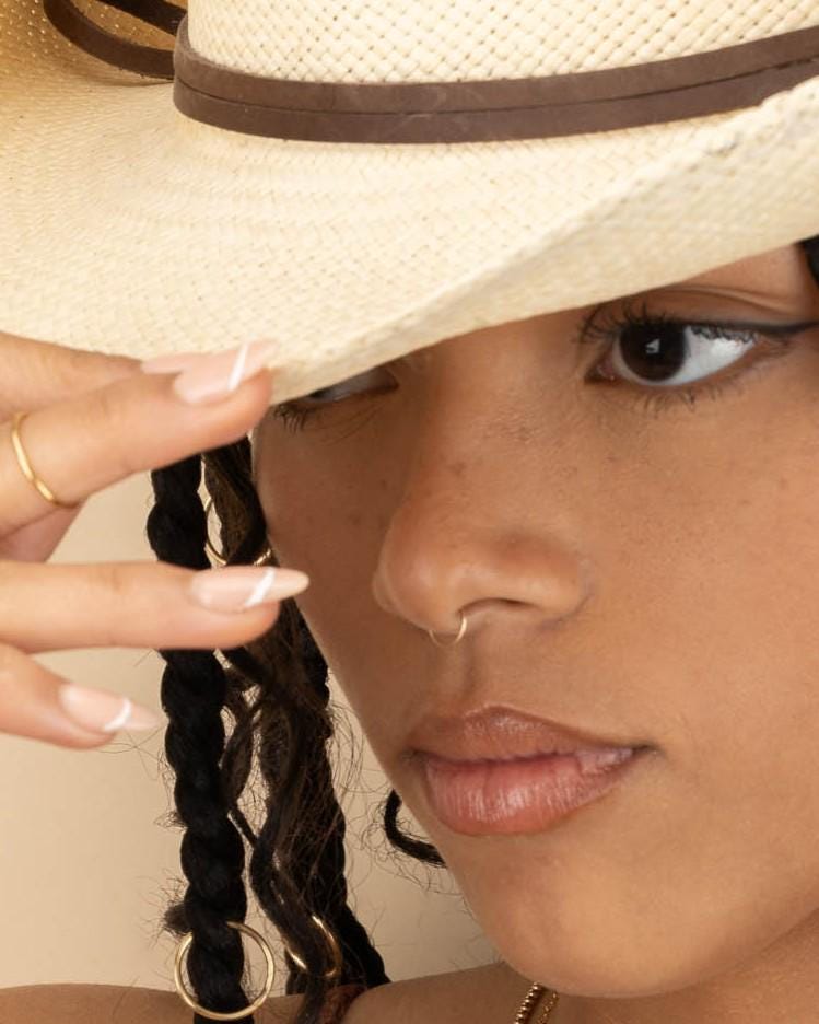 4. Once inserted in your piercing, gently twist the hoop so the ends meet and line up perfectly for a comfortable fit