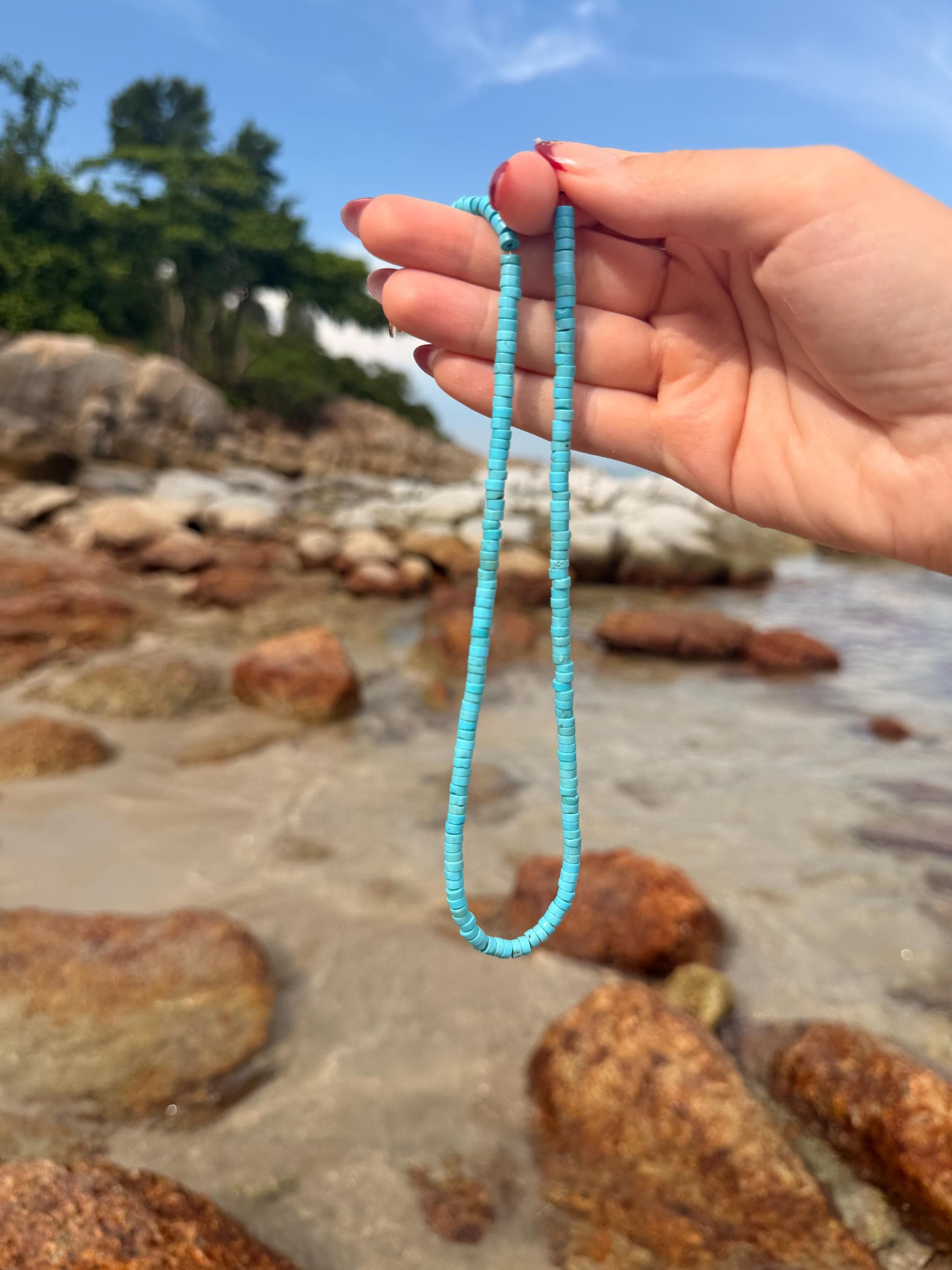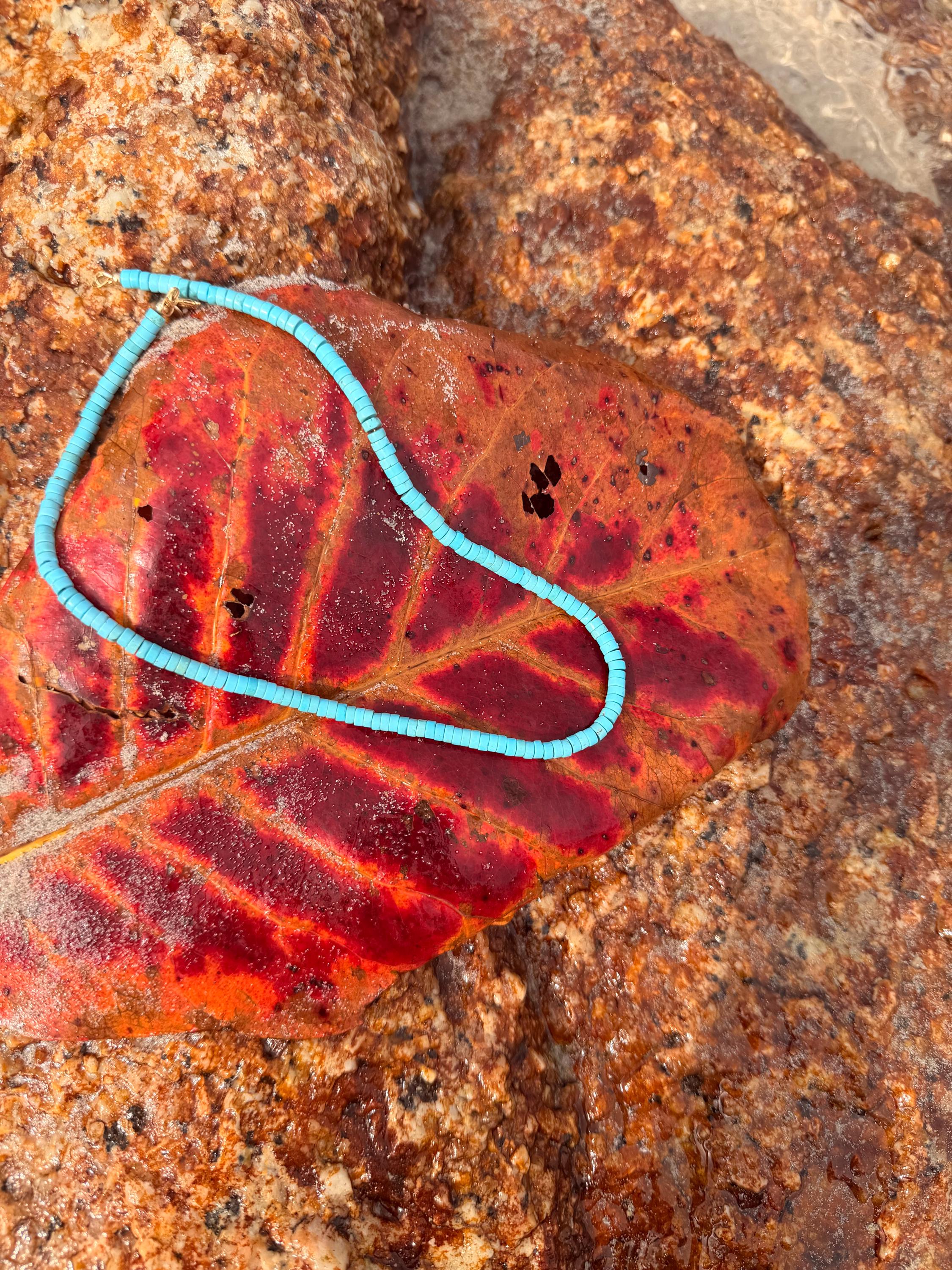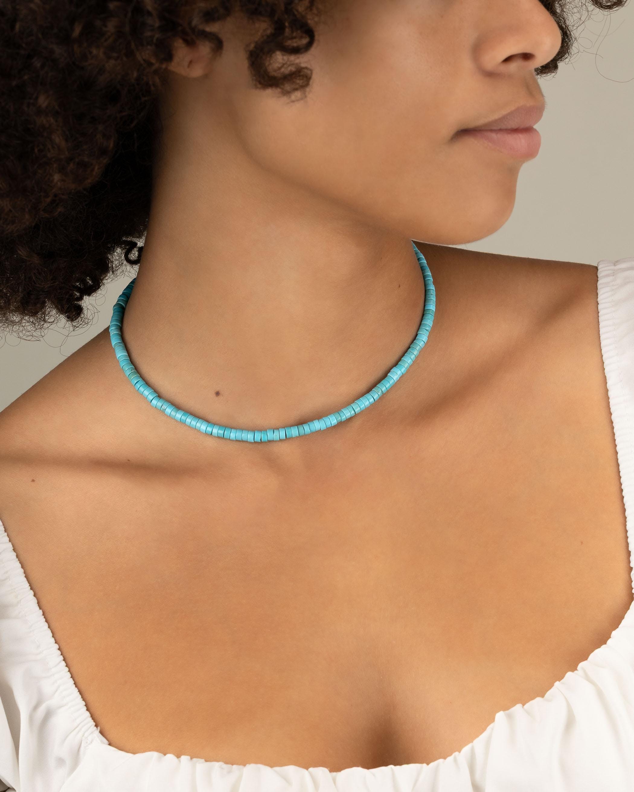* Genuine Southwest Turquoise heishi beads with your choice of precious metal clasp *
