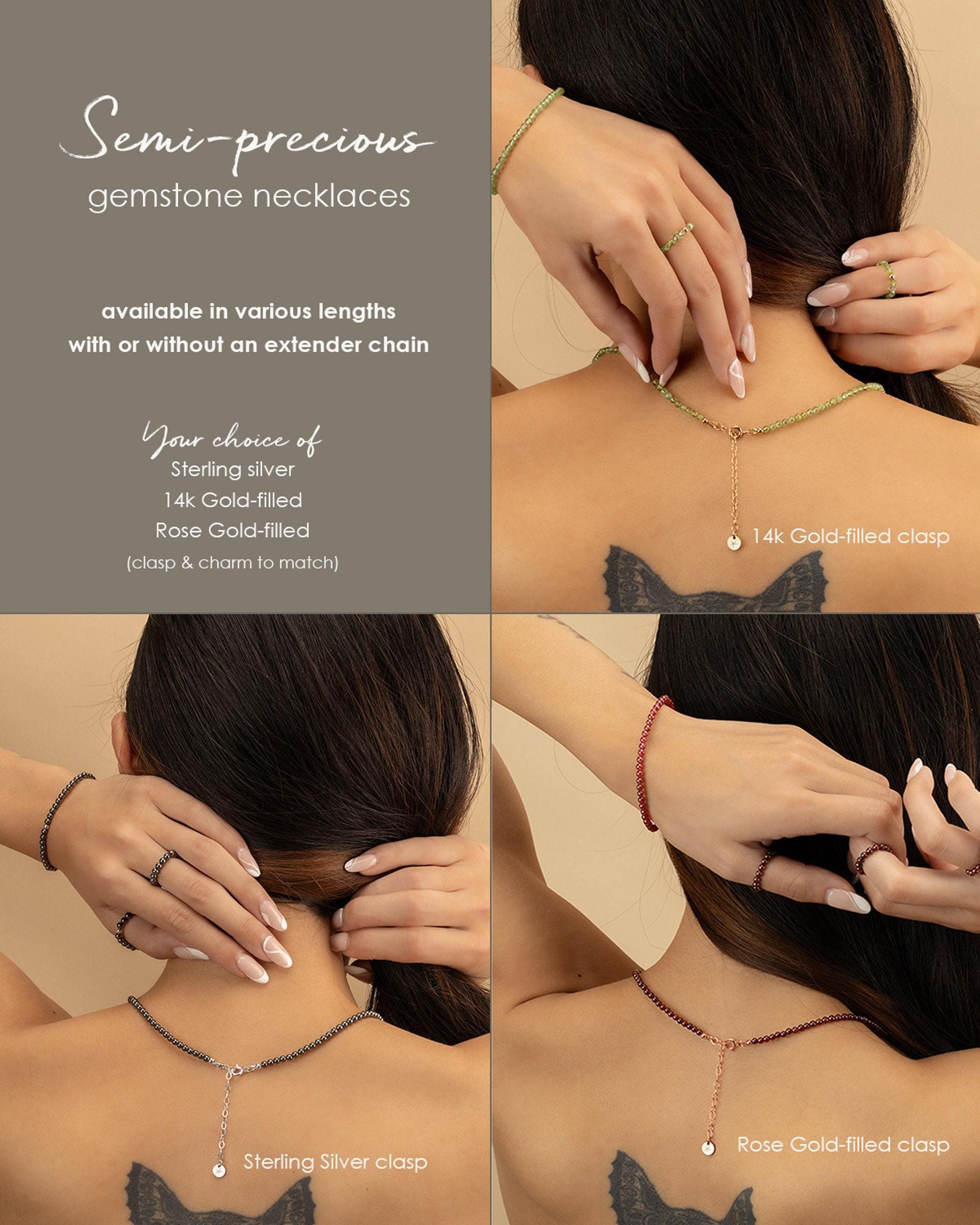 Genuine gemstone beaded necklace handmade in your choice of length and clasp color. These beautiful necklaces are hand-strung on high-quality jeweler's wire. A beautiful pop of color to wear on its own or layered with your favorite pendants.