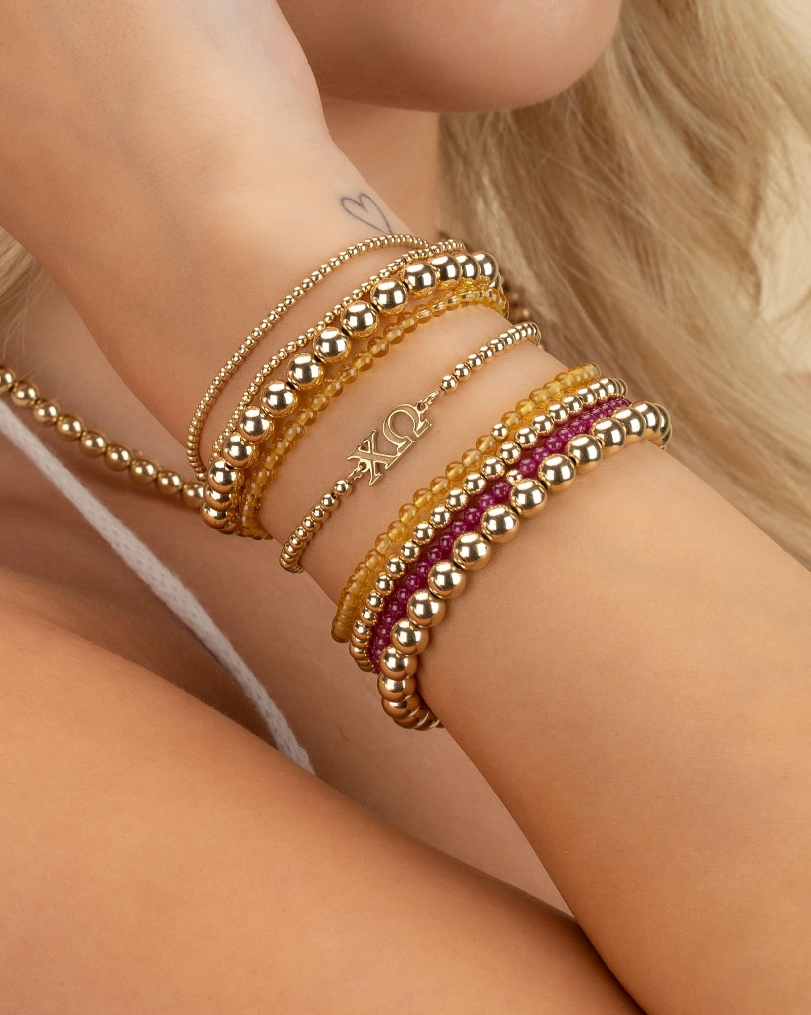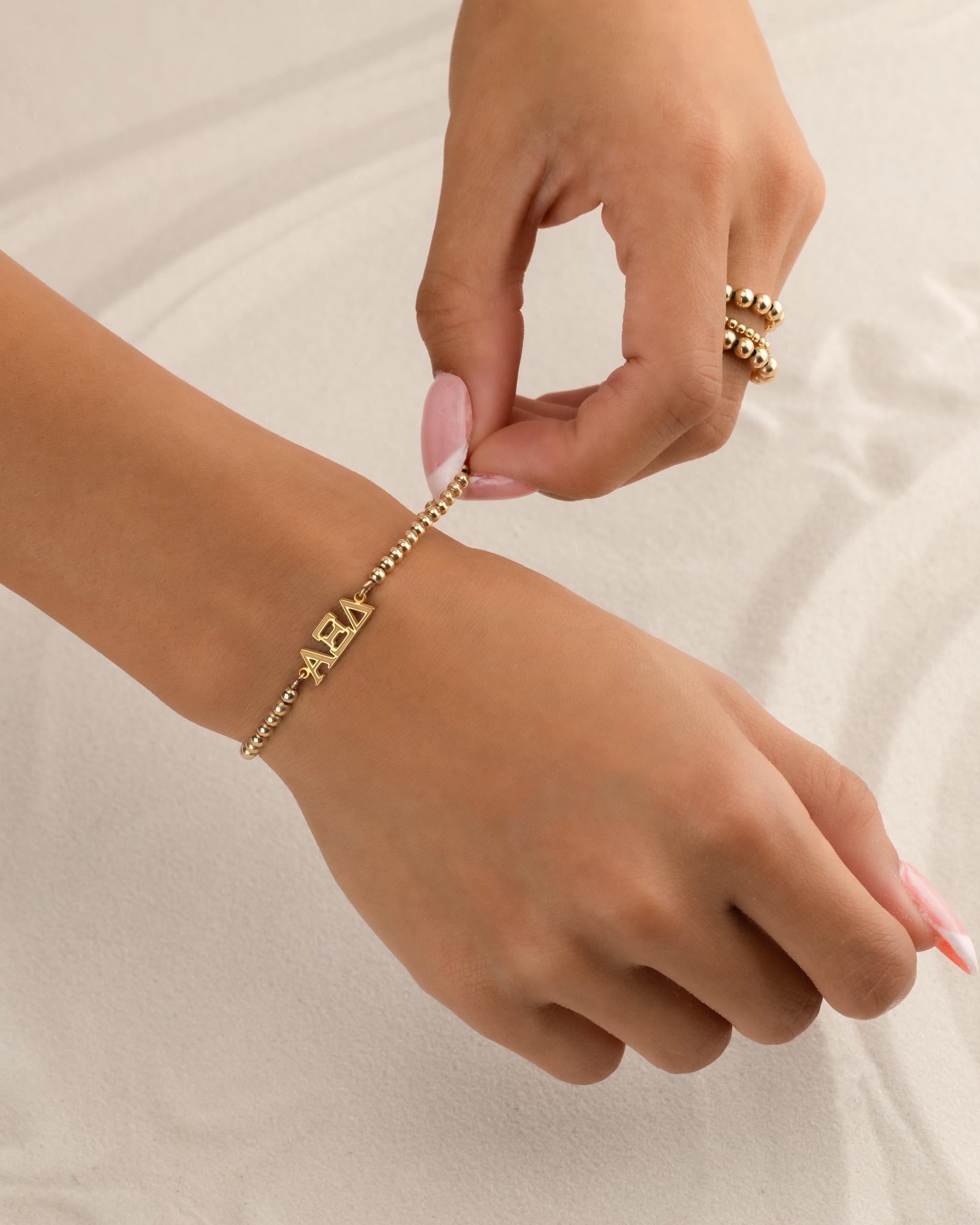 Our custom sorority logos on our bestselling beaded bracelet or anklet. Wear solo for a delicate statement or layer with other bracelets for a trendy and personalized look that showcases your unique style. All bracelets and anklets are hand-strung on a strong stretch cord - easy and comfy to wear.