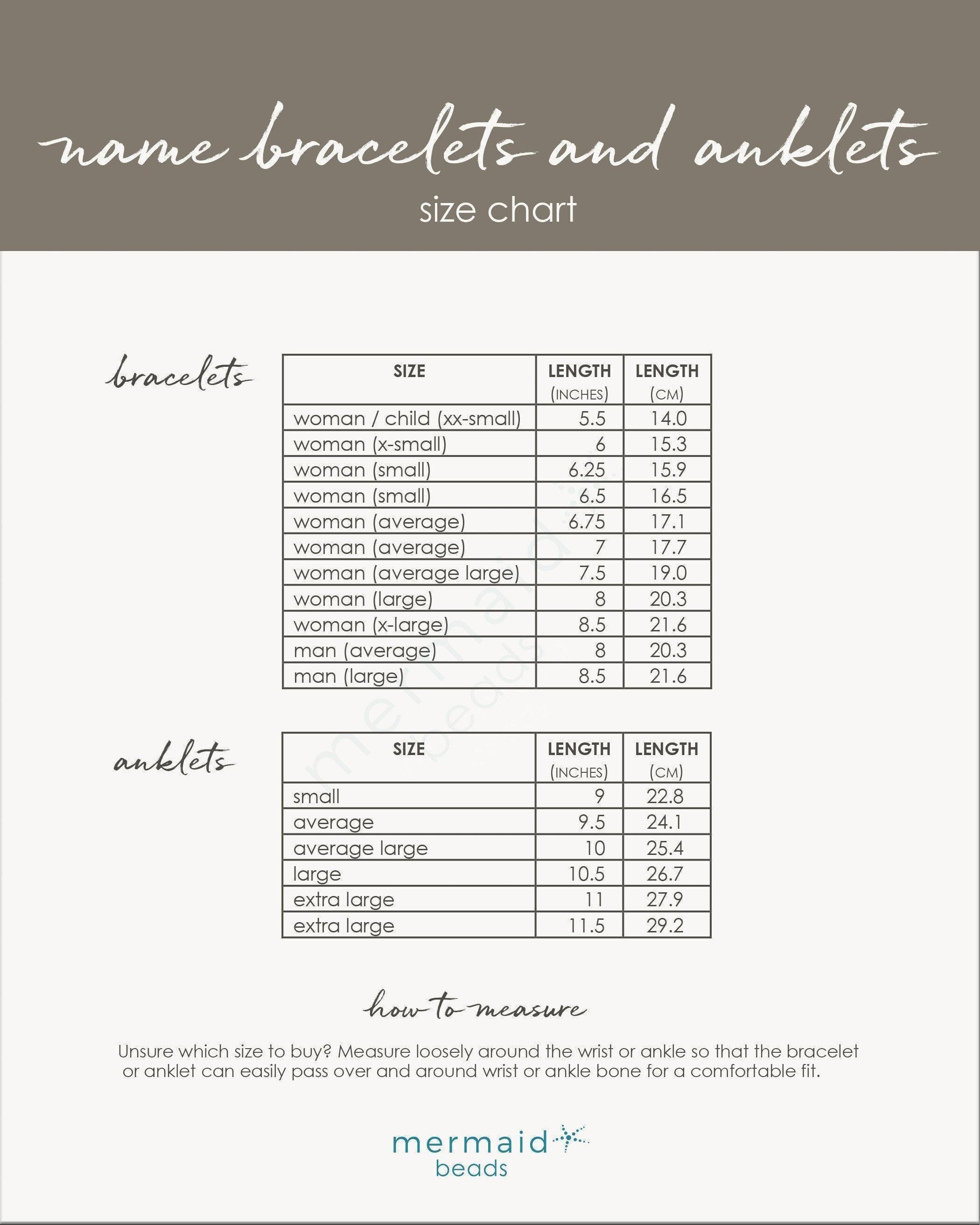 🌴 Simply hold a string or ribbon around your wrist where you'd like the bracelet to lay. It should be loose enough so it moves easily around your wrist bone and is comfy and not too tight.