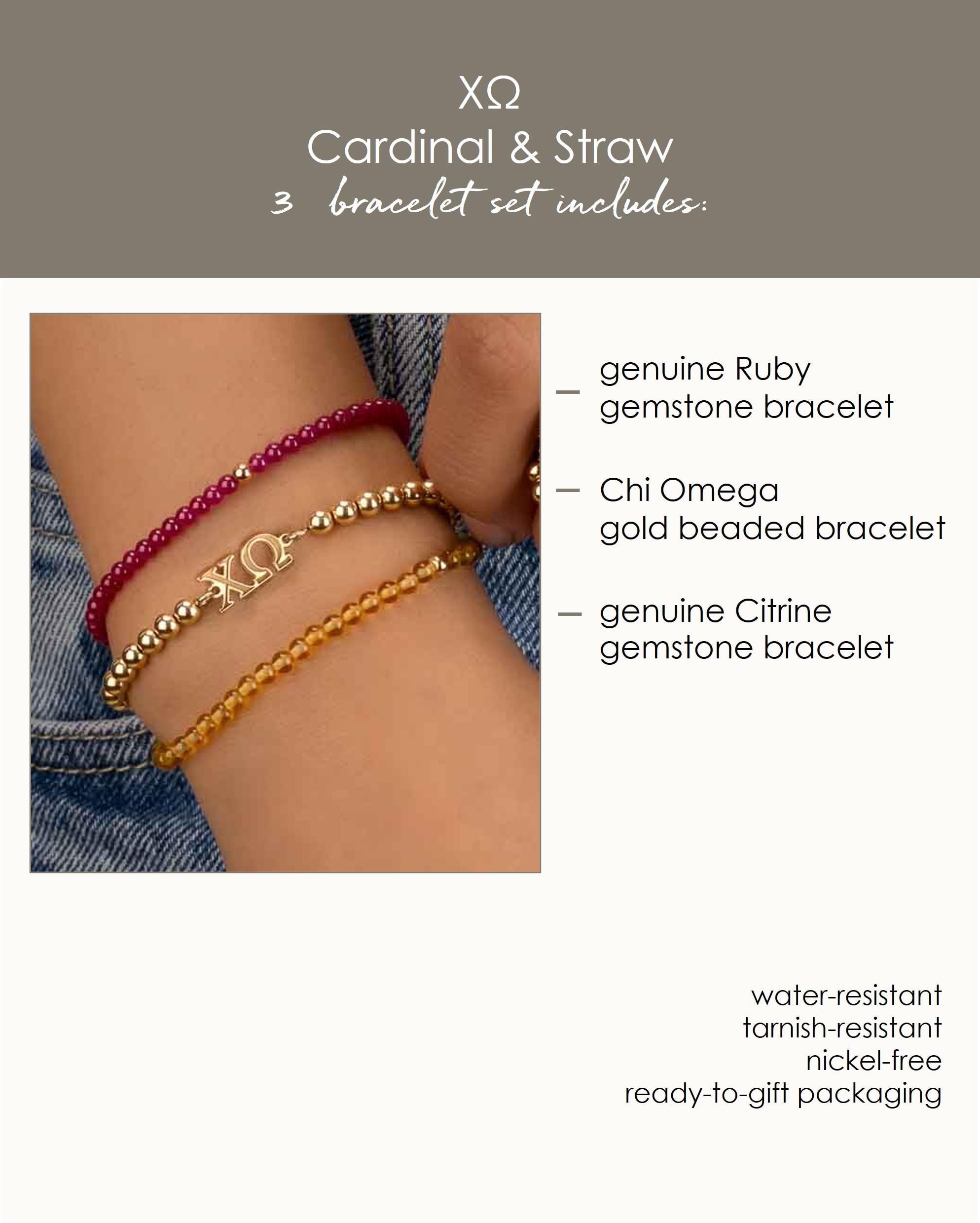 • Handmade using 14k Gold-Filled 3mm beads with our laser cut ΧΩ charm