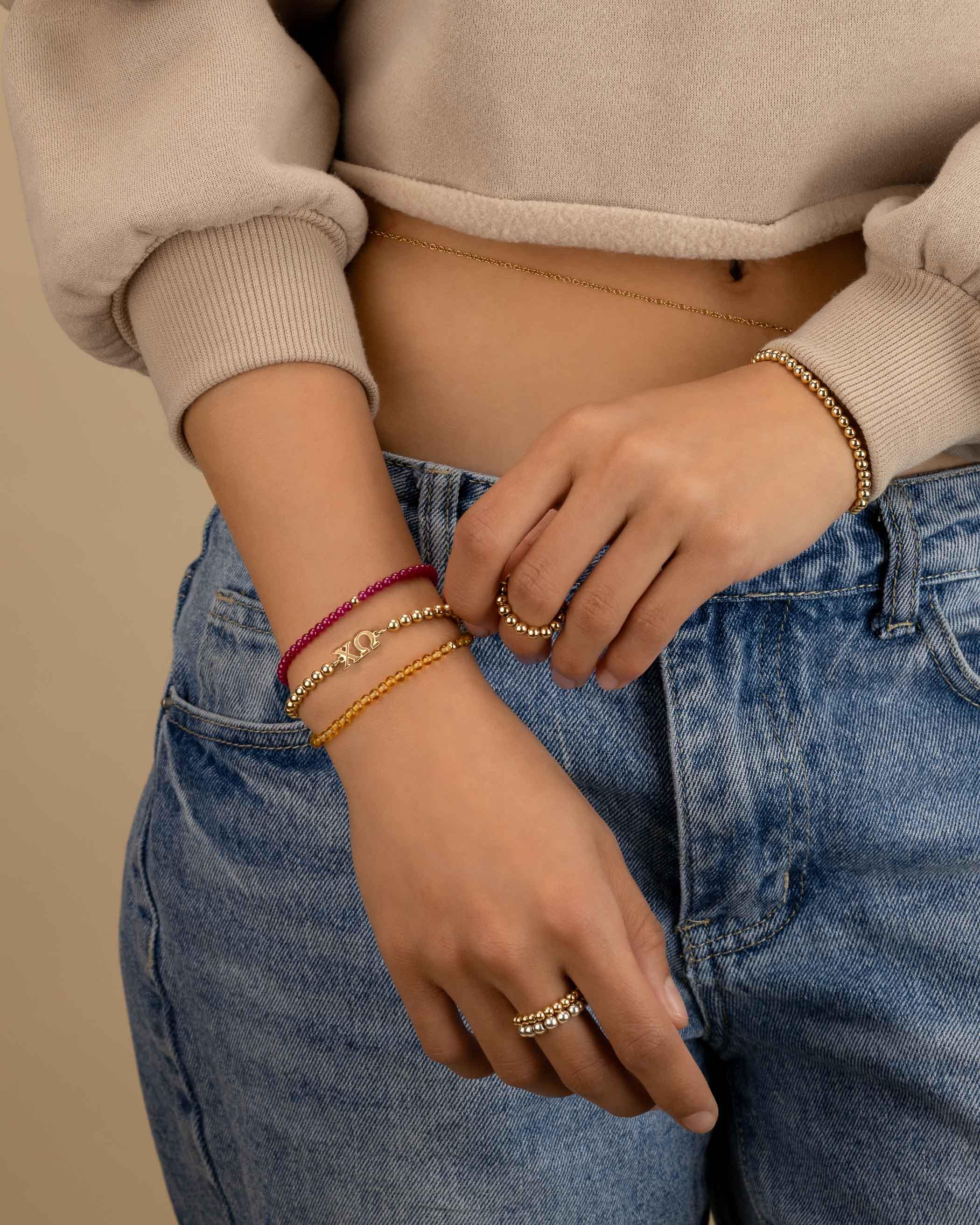 • Paired with 2 genuine gemstone bracelets (3mm beads): Ruby and Honey citrine