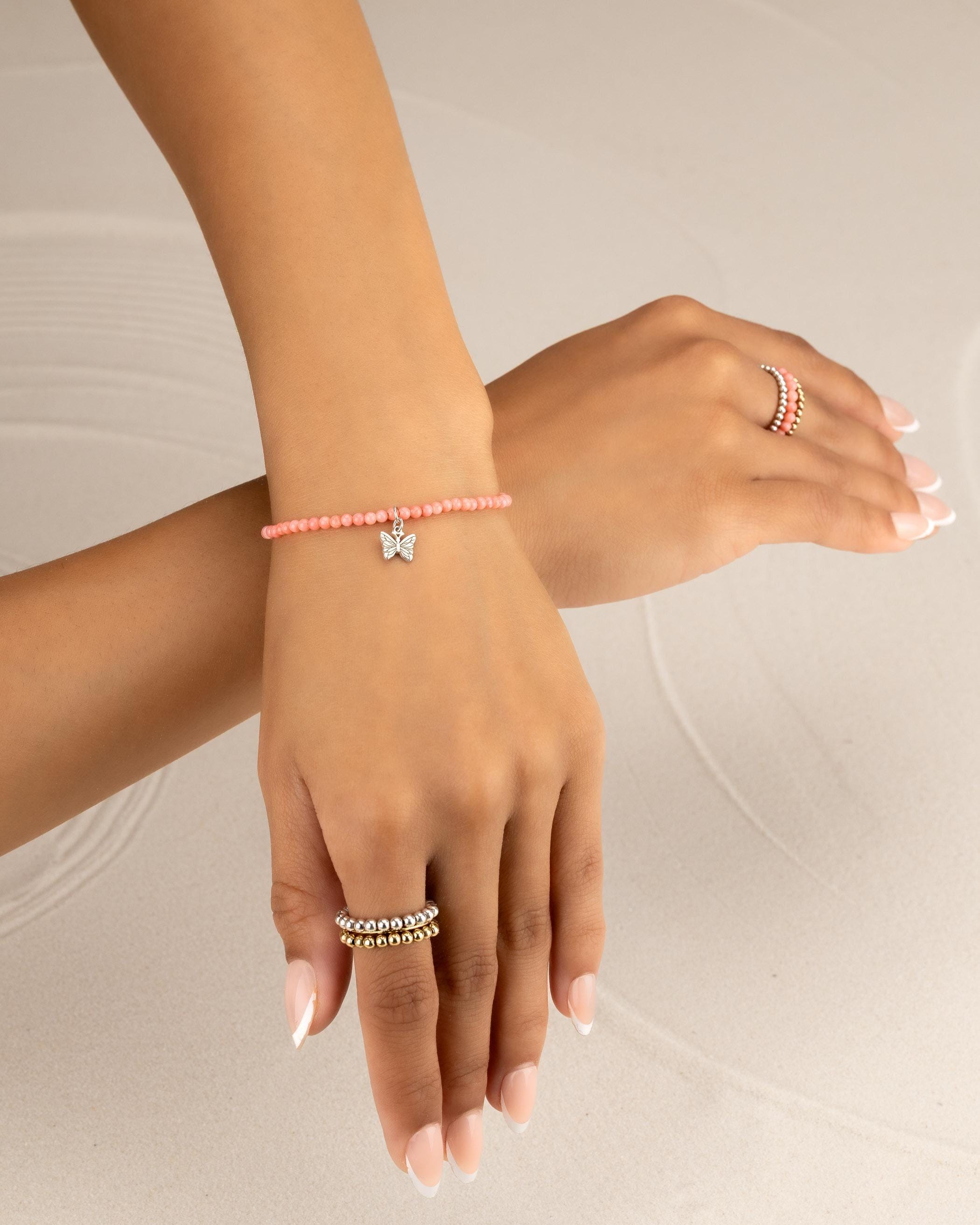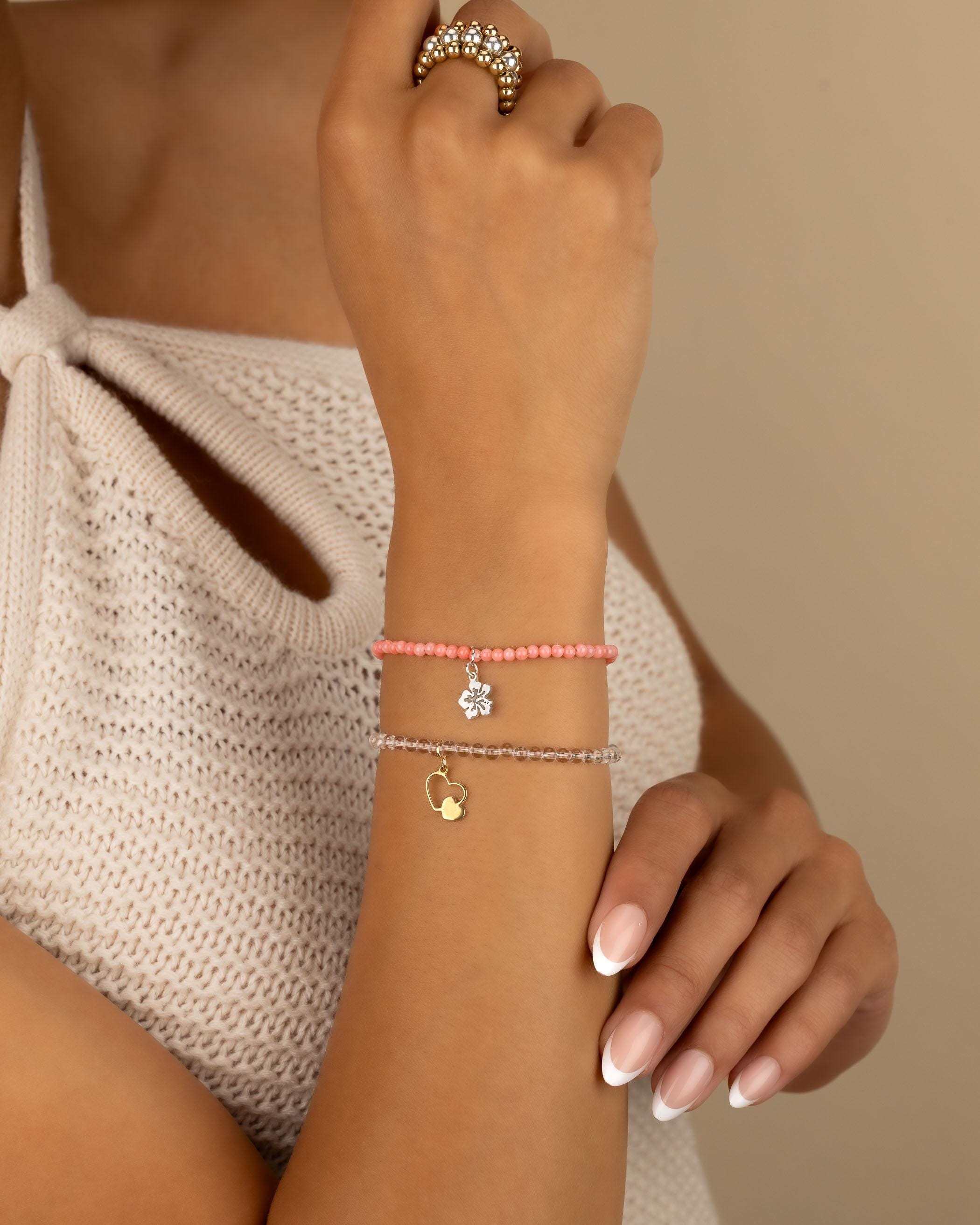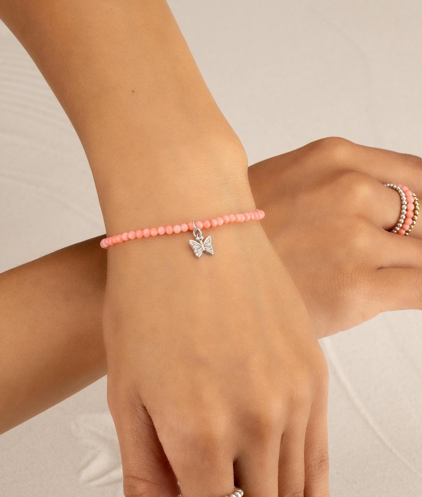 CORAL CHARM BRACELET • personalized charm • beach lover • pink coral jewelry • dainty bracelet stretch water resistant BRBS3CHAOp