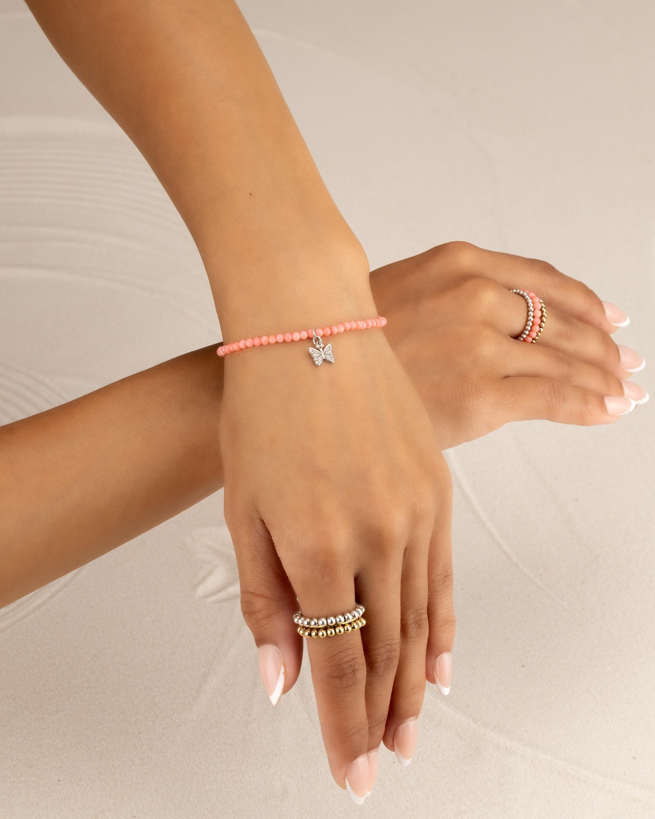 CORAL CHARM BRACELET • personalized charm • beach lover • pink coral jewelry • dainty bracelet stretch water resistant BRBS3CHANp
