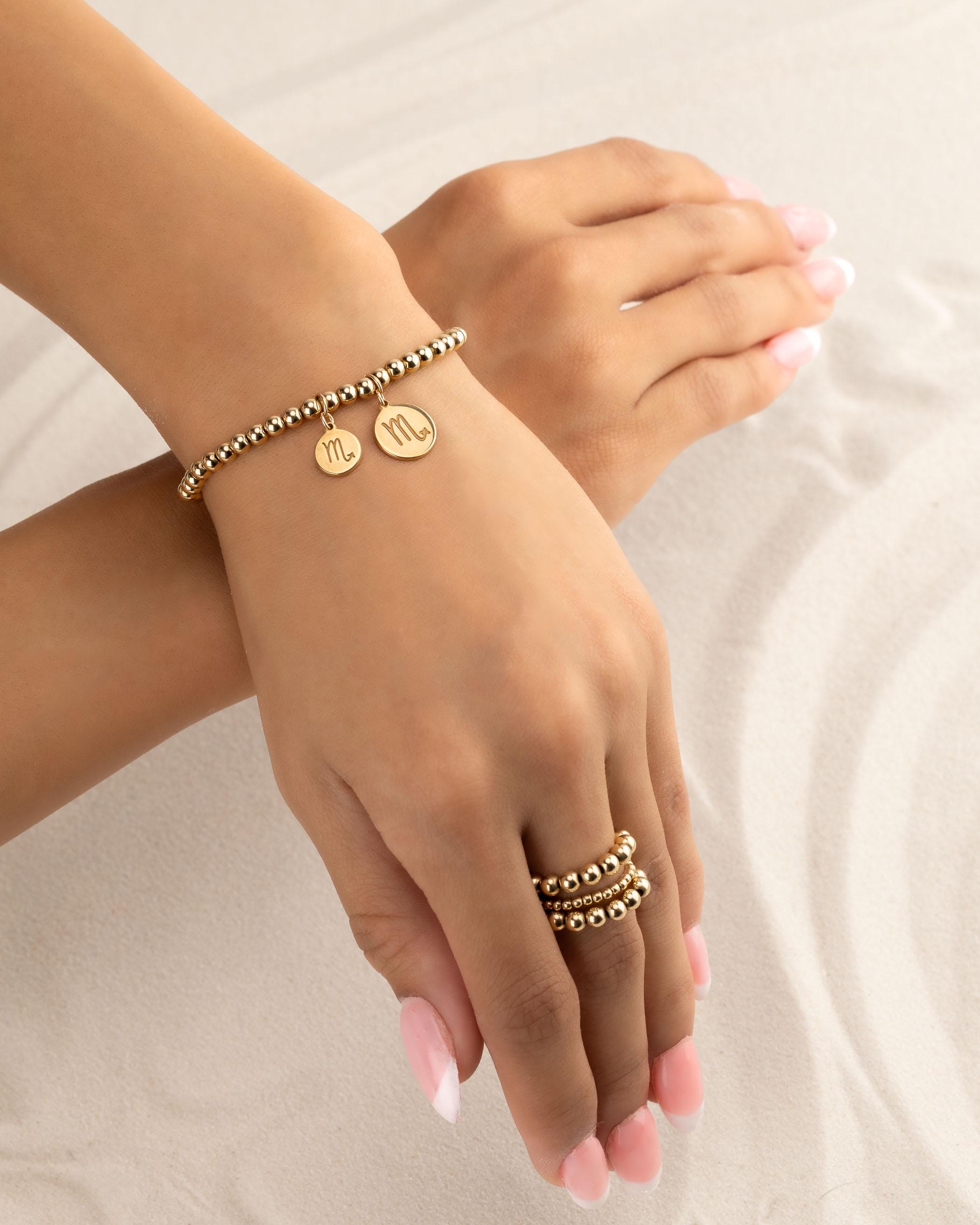 Beautiful charm bracelets and anklets with our custom made charms. Our precious metal beaded bracelets and anklets are hand-strung on high-quality stretch cord. Mix and match bead sizes & colors for your own unique bracelet or anklet stack.
