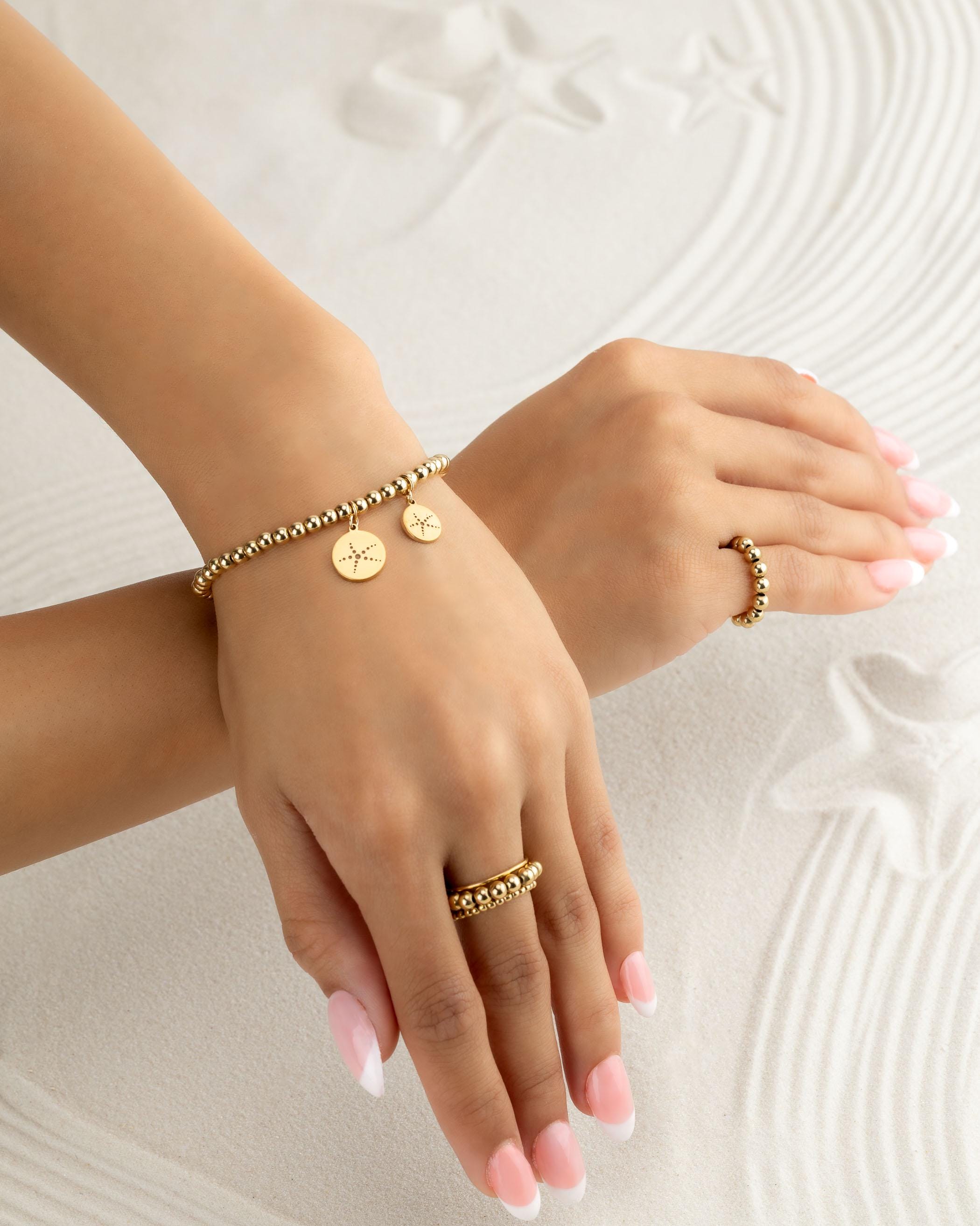 Beautiful charm bracelets and anklets with our custom made charms. Our precious metal beaded bracelets and anklets are hand-strung on high-quality stretch cord. Mix and match bead sizes & colors for your own unique bracelet or anklet stack.