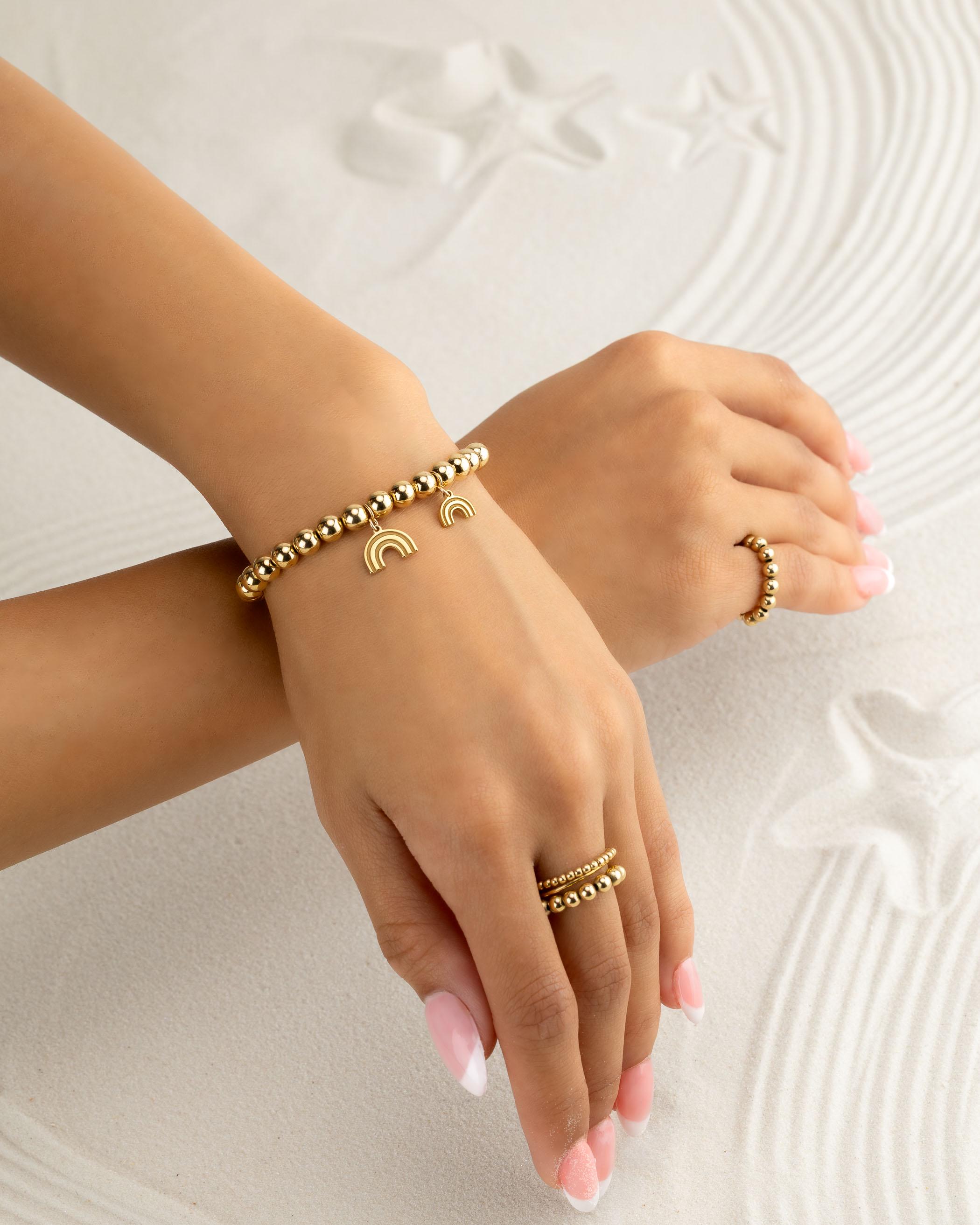 RAINBOW CHARM beaded bracelet • gift for her • charm jewelry • stackable bracelet • stretch • water resistant • silver, gold or rose gold