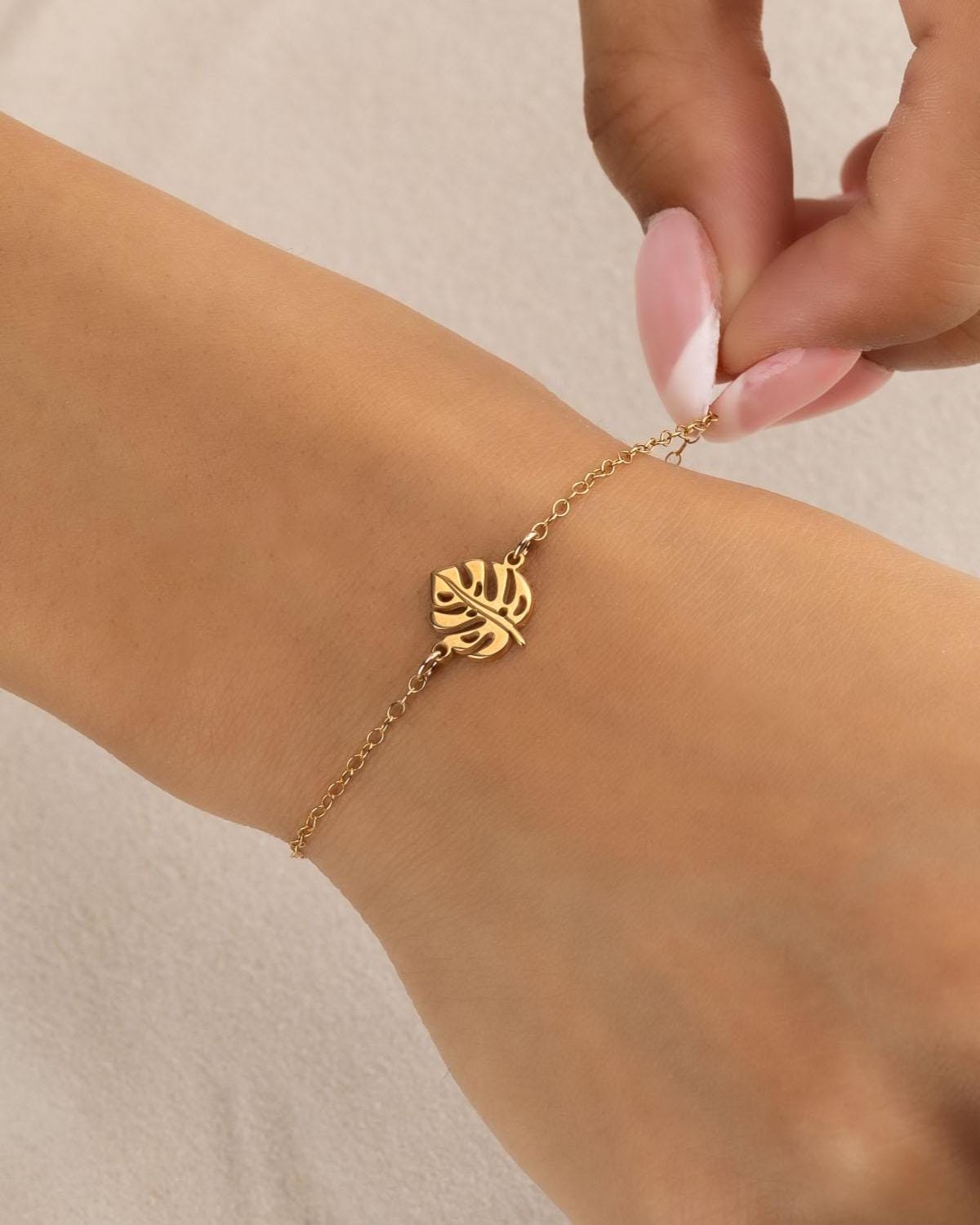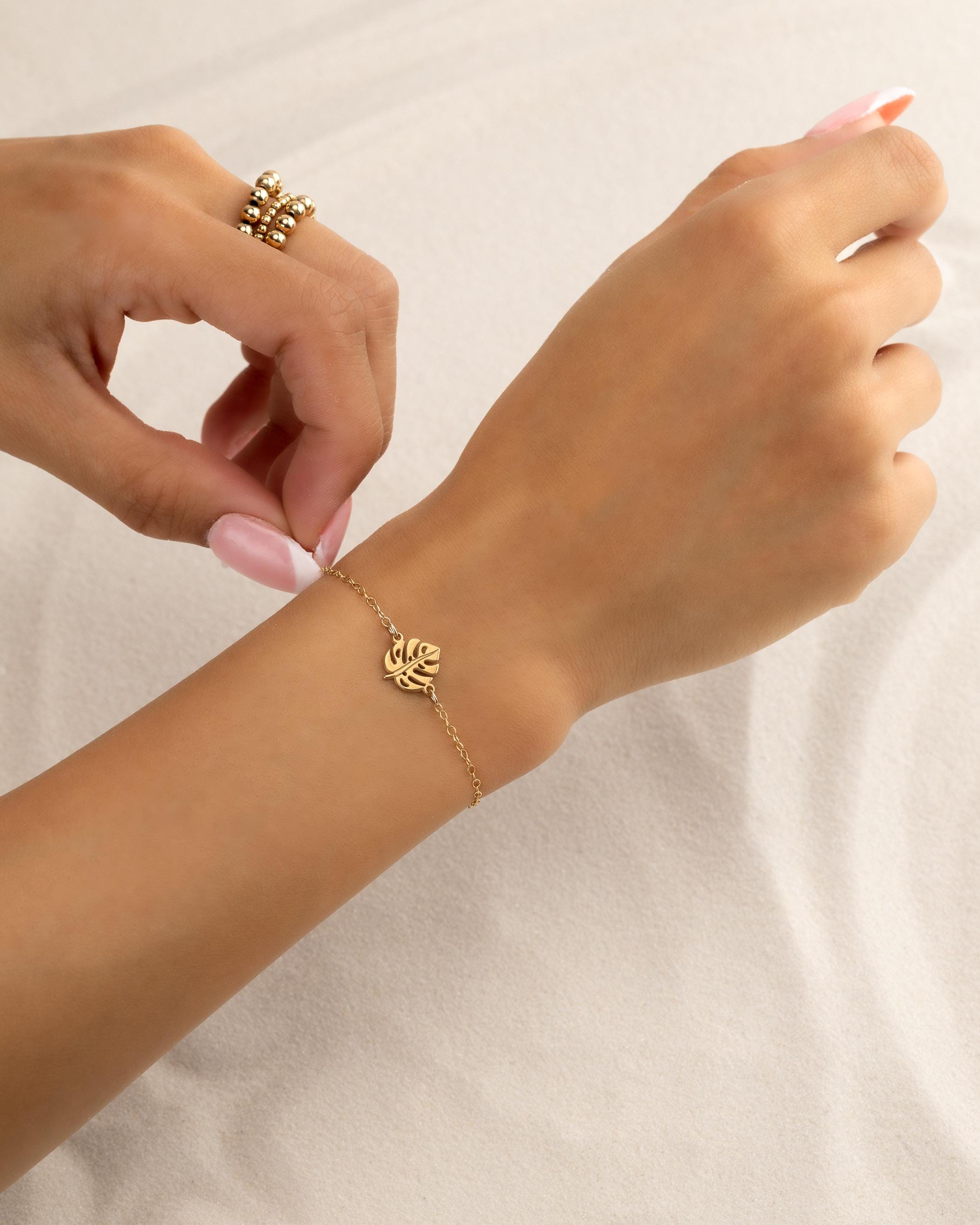 MONSTERA LEAF BRACELET • delicate palm charm chain bracelet or anklet • bridesmaids beach gift • anniversary gift • gold silver or rose gold