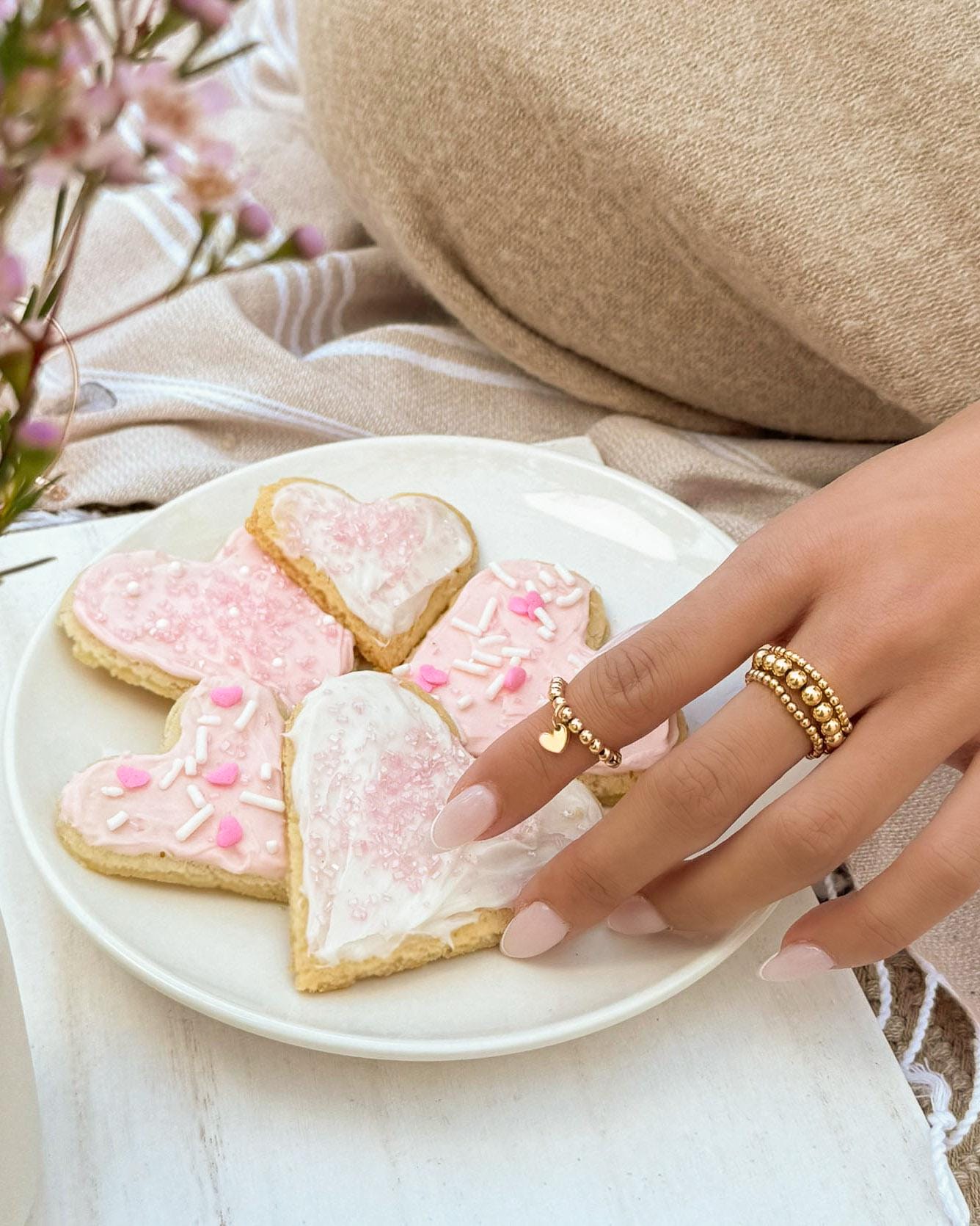 Our precious metal beaded rings are hand-strung on high-quality stretch cord. Our charms are designed and made in our studio using precious metals. Mix and match bead sizes & colors for your own unique ring stack.
