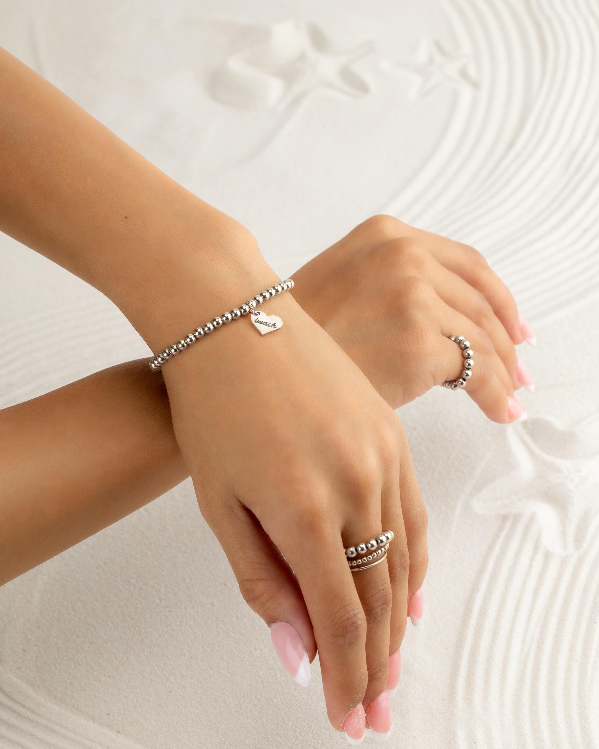 Your choice of Sterling silver, 14k gold-filled or rose gold-filled beads. Choose from five different bead sizes to create your own unique bracelet. Our beaded bracelets and anklets are hand-strung on high quality stretch cord making a for a seamless comfortable design.