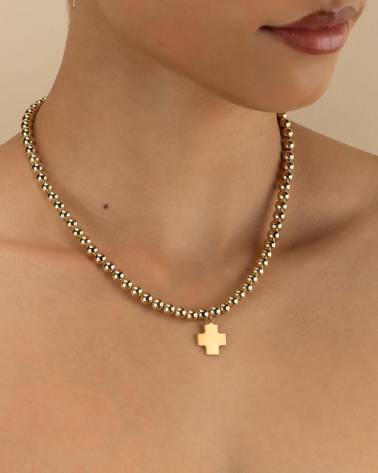Our pretty beaded cross necklace. We offer you lots of choices to create your perfect necklace! Select 14k gold filled, .925 Sterling silver or Rose gold filled. Precious metals handcrafted in your choice of bead size and necklace length. These beautiful necklaces are hand-strung on high-quality jeweler's wire. Our cross is