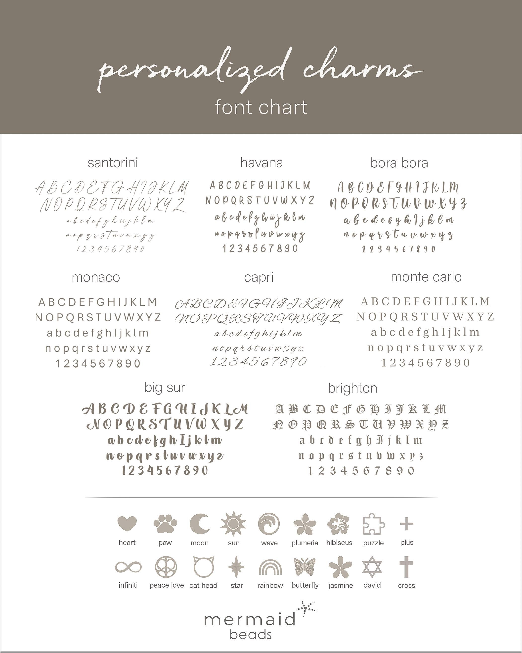 You're the designer: Pick your favorite font or symbol from our guide and let your personality shine! All pieces are handcrafted in our US studio.