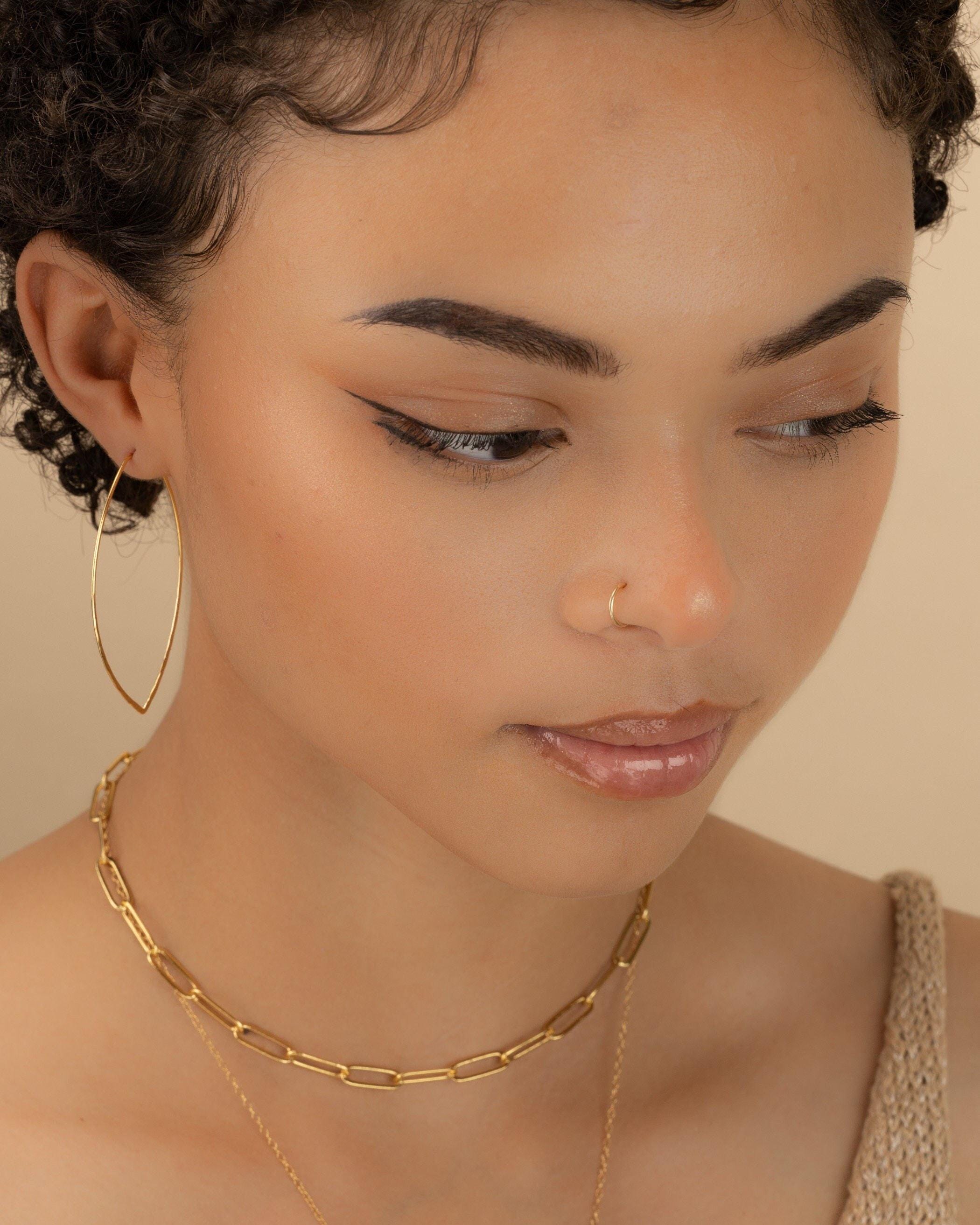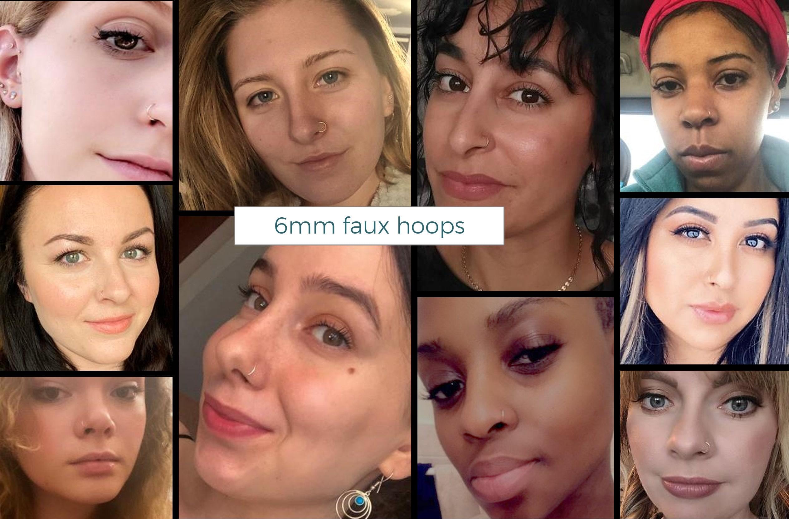 Check out the gorgeous Instagram Beauty Influencers modeling our faux nose rings in the images above! We are so grateful for their beautiful images and support of this jewelry. Also scroll through the images to view our Faux Hoop Sizing Guide and Faux Hoop Buying Guide. Check our FAQs (frequently asked questions) section below for more information.