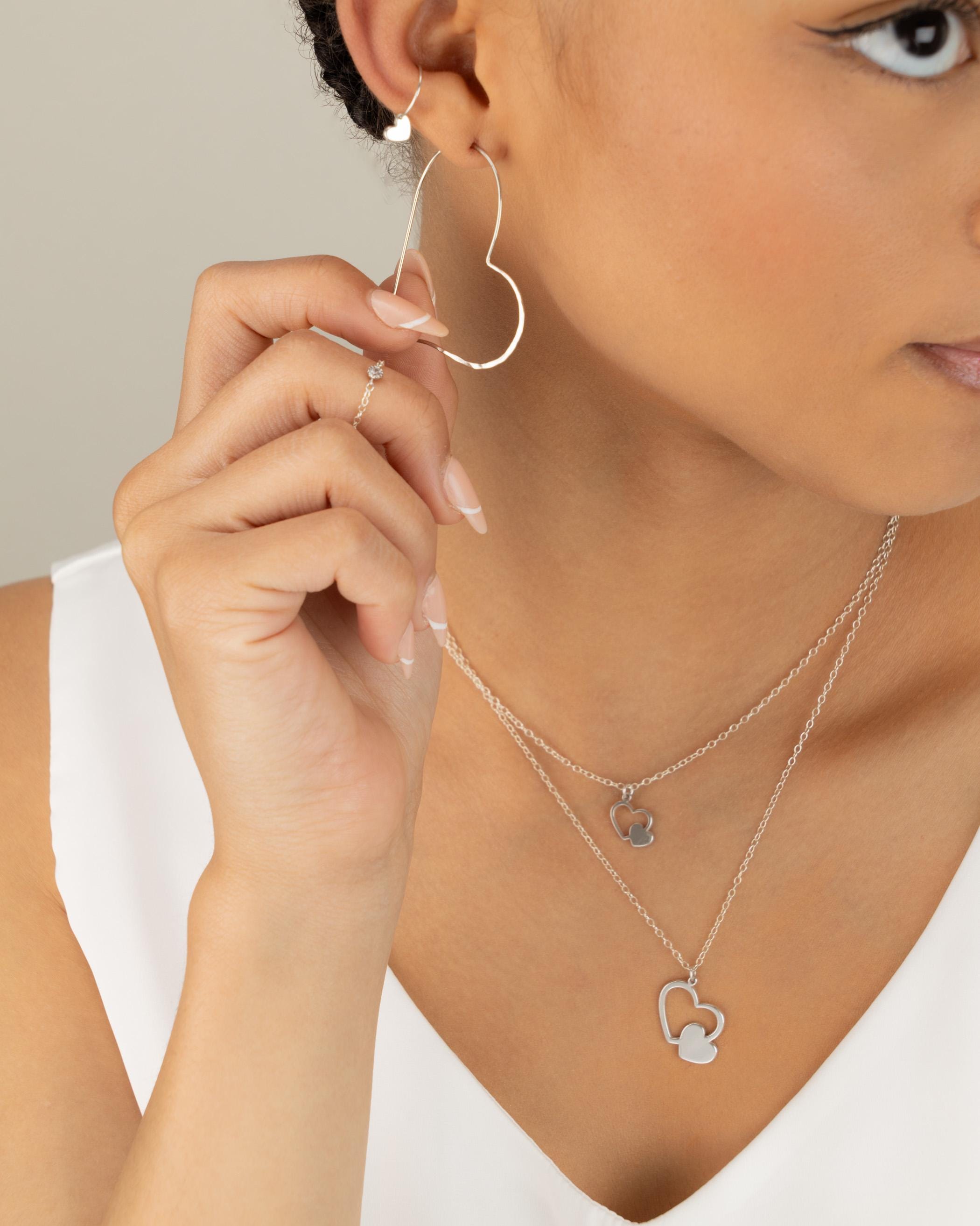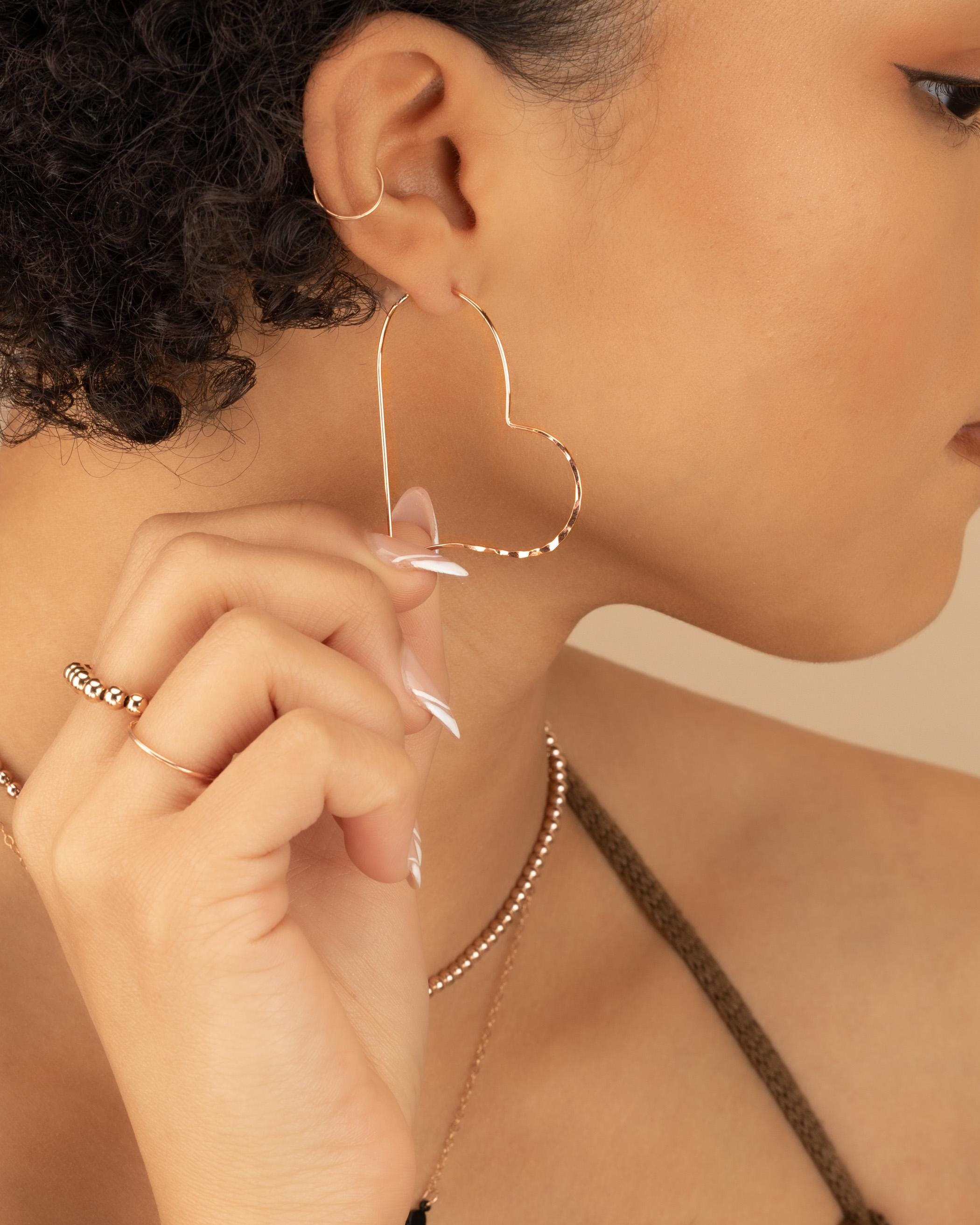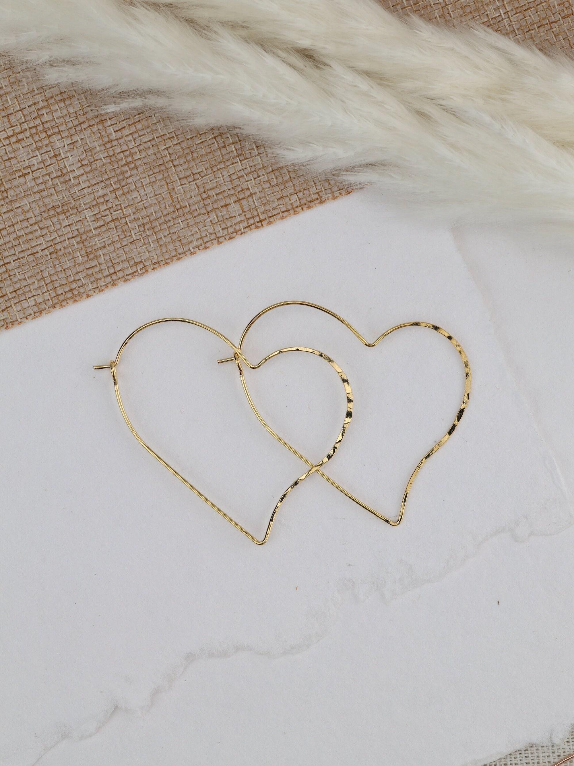 These fun heart hoops will be your favorite go-to hoops! The floating heart shape provides a unique and interesting addition to any outfit. The perfect size to compliment any face shape.