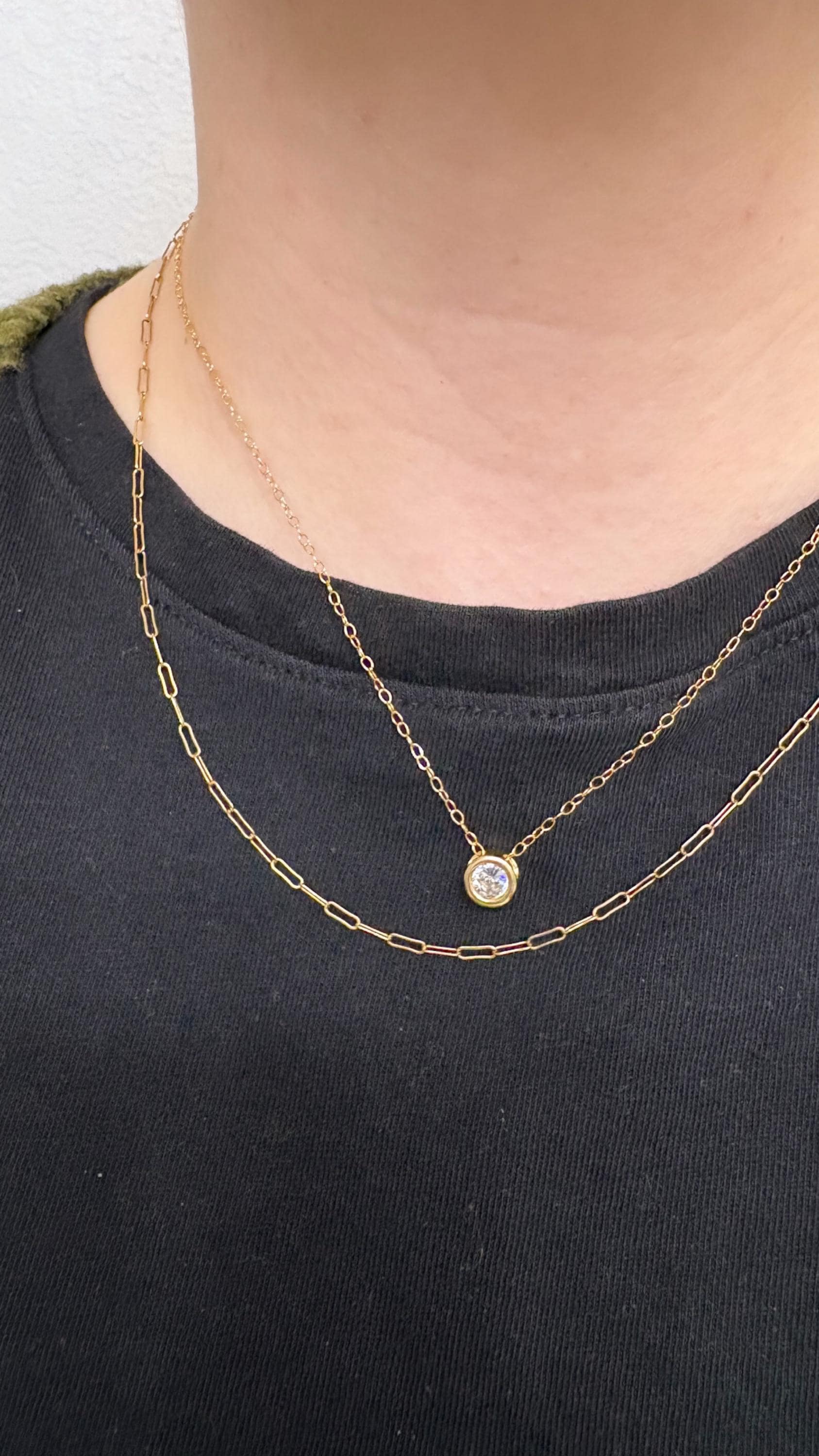 << This pretty pendant necklace features a modern minimalist solitaire diamond cz stone. Your choice of 14k Gold Filled or Sterling Silver! The diamond cubic zirconia is a round brilliant cut stone captured in an amazing bezel setting that frames the stone beautifully and allows the light to pass through the sides which makes the stone sparkle!